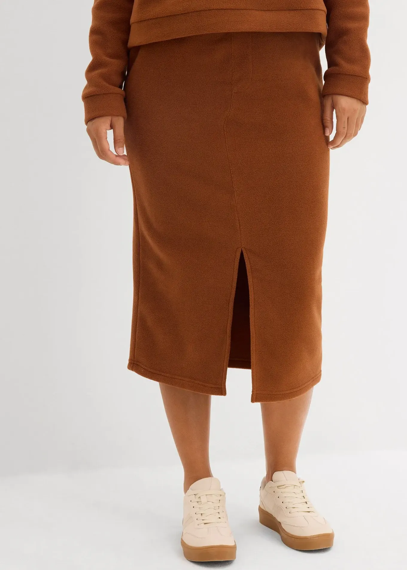 Jupe midi à taille élastiquée et fente d’aisance devant