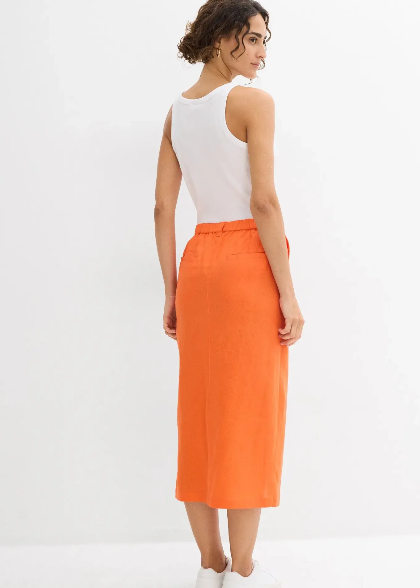 Jupe midi fendue devant avec poches et taille élastiquée à l’arrière