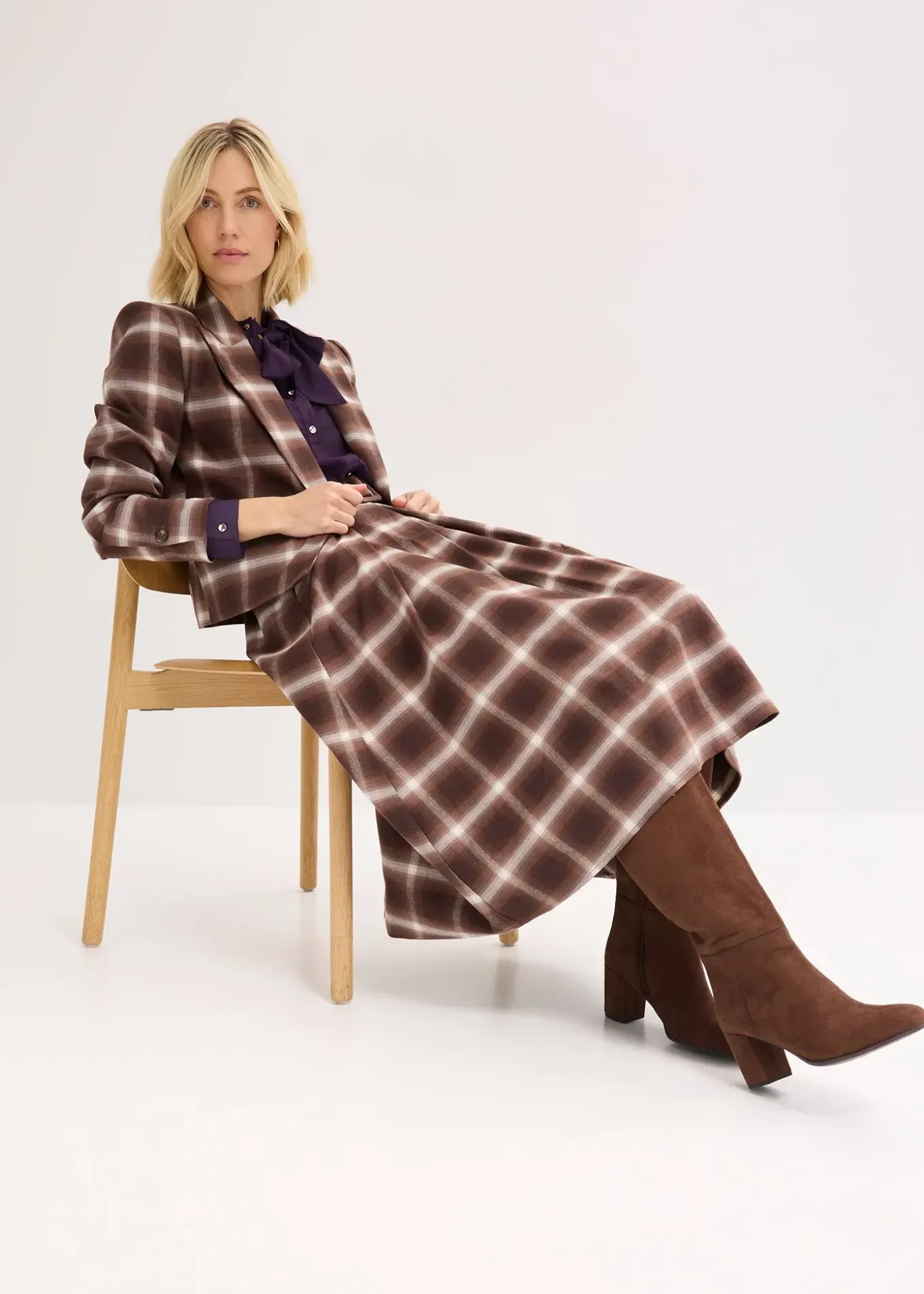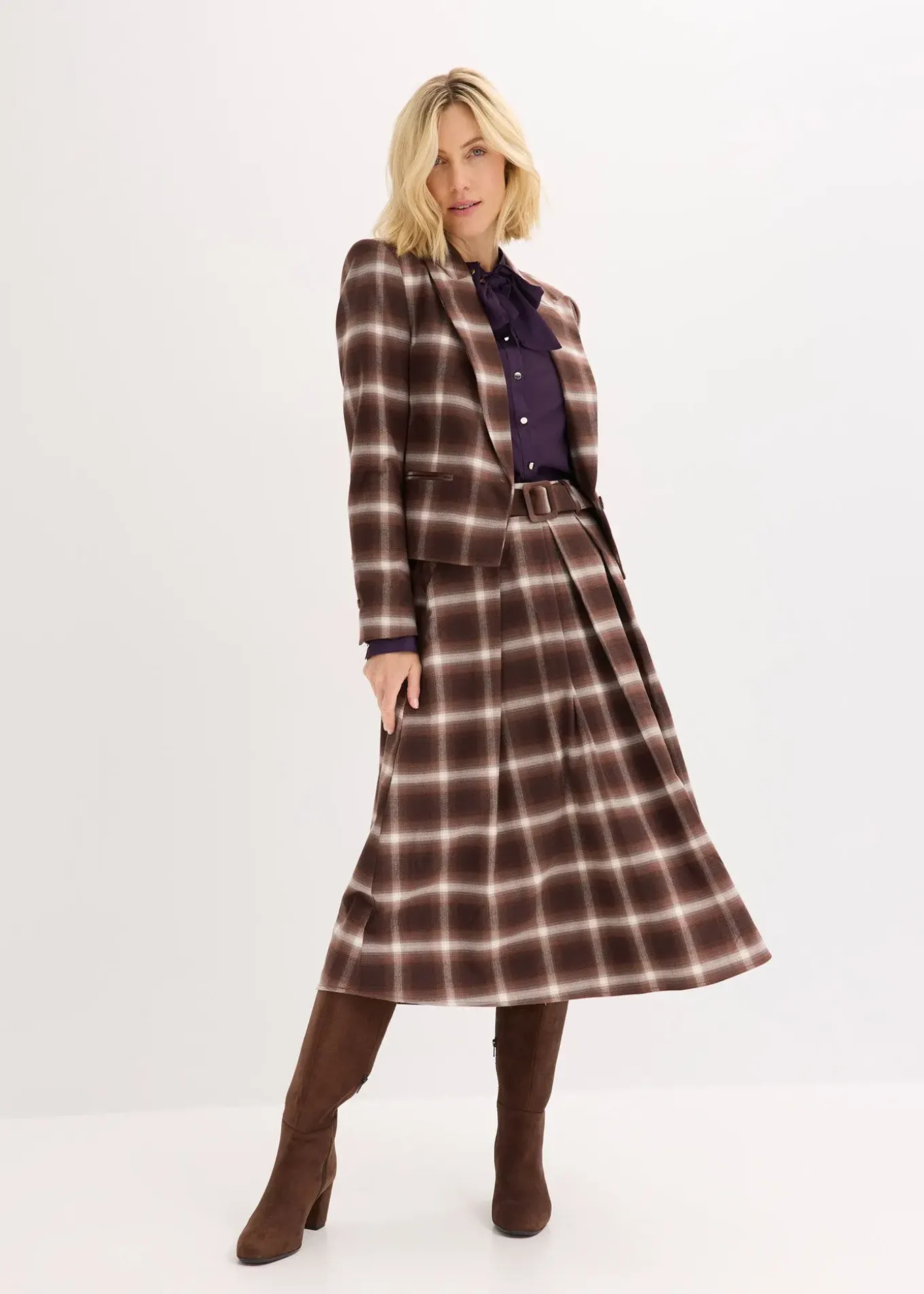 Jupe plissée à carreaux avec ceinture (ens. 2 pces)
