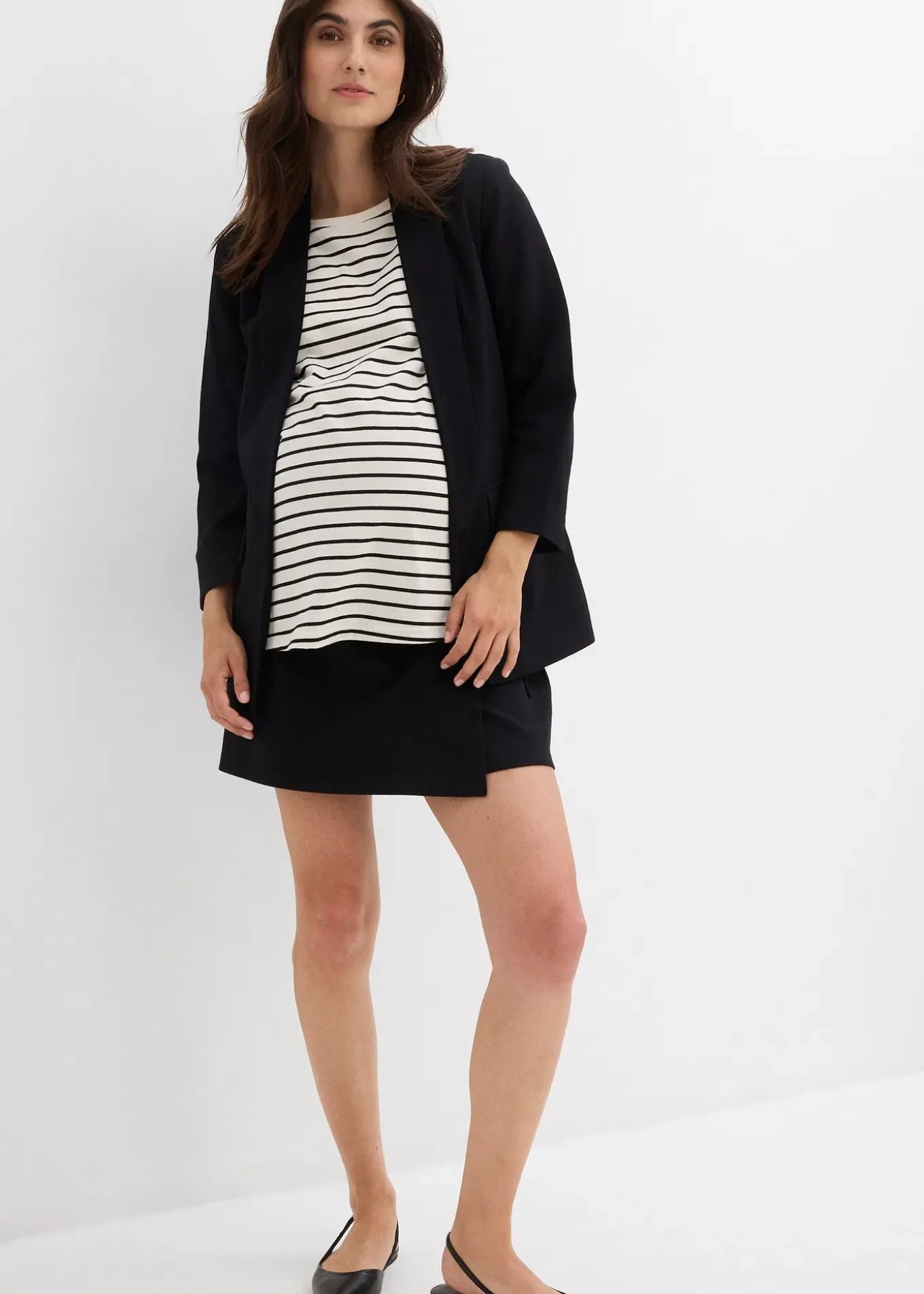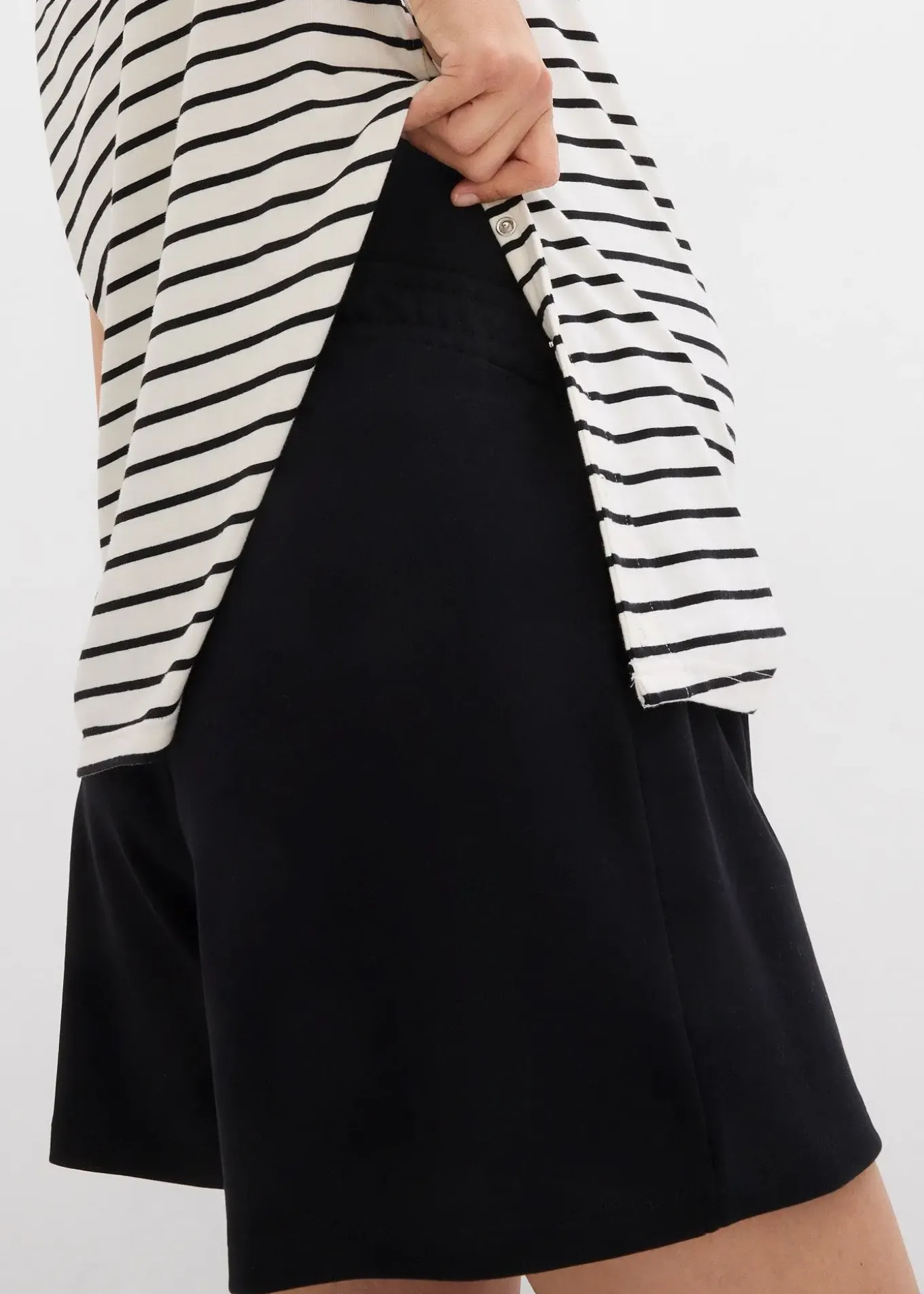 Jupe-short de grossesse en coton interlock épais. Large ceinture entièrement élastiquée pour un confort optimal au niveau du ventre.