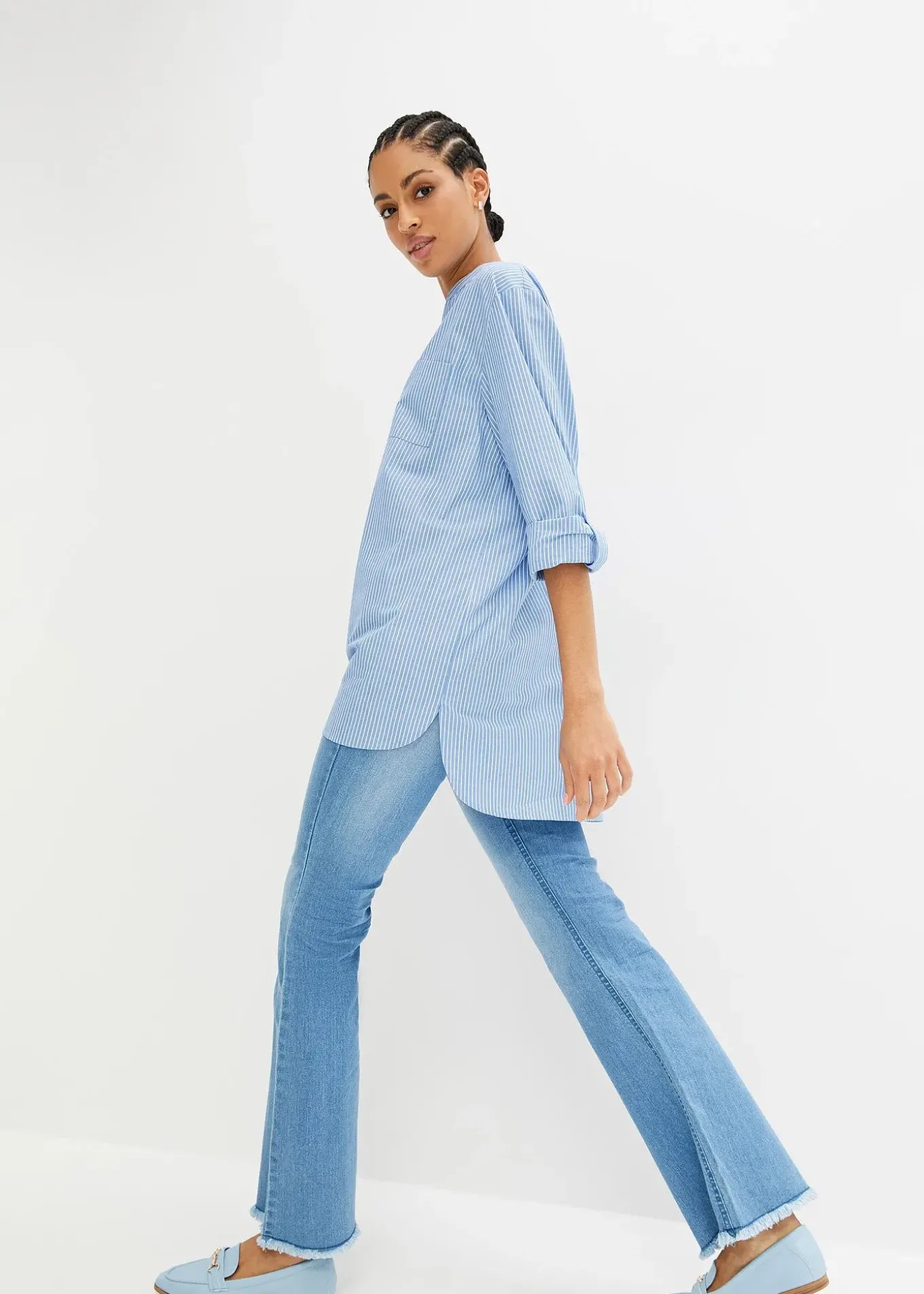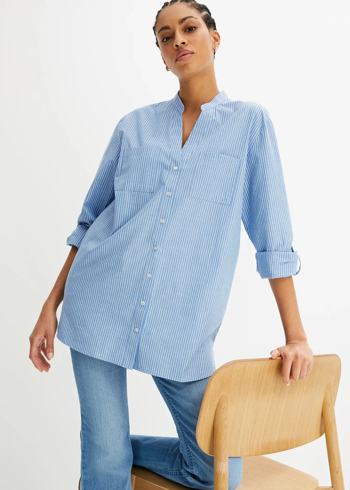 Long chemisier décontracté à rayures estivales