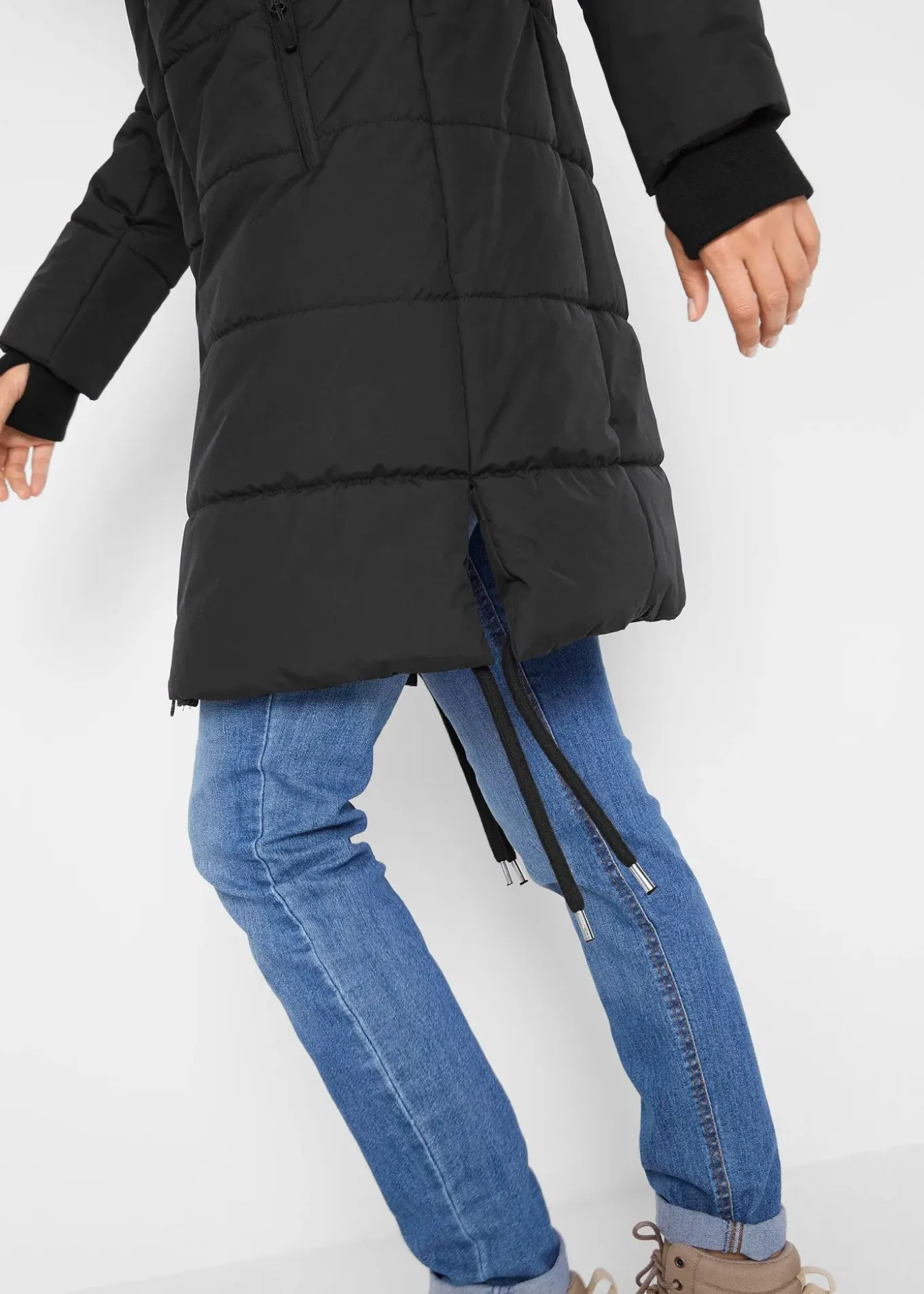 Mitaines, poches zippées, cordon de serrage à la base avec fentes latérales, long. env. 90 cm.