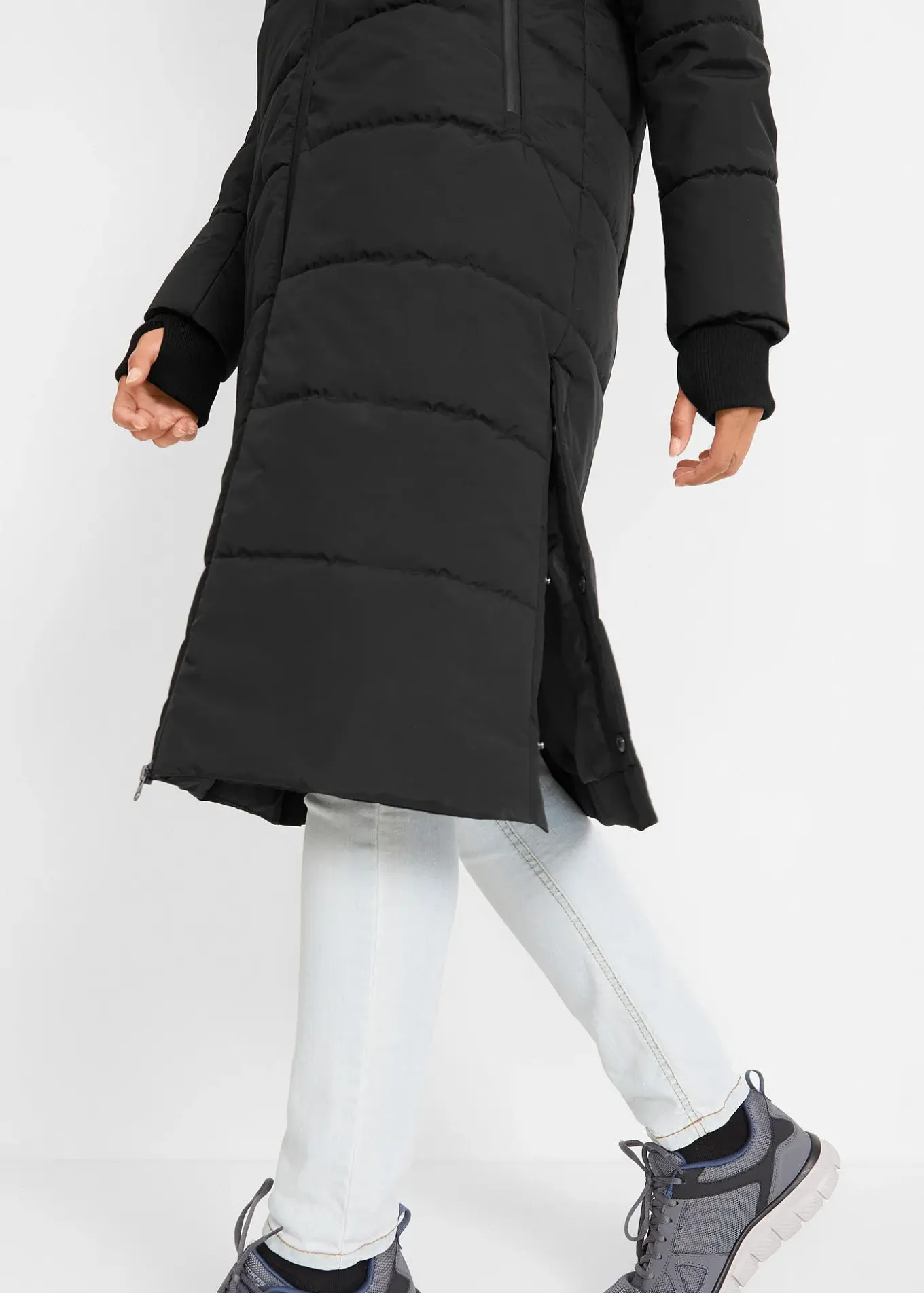 Manteau matelassé fonctionnel, poches zippées, mitaines, fermeture zippée double sens, long. env. 110 cm.