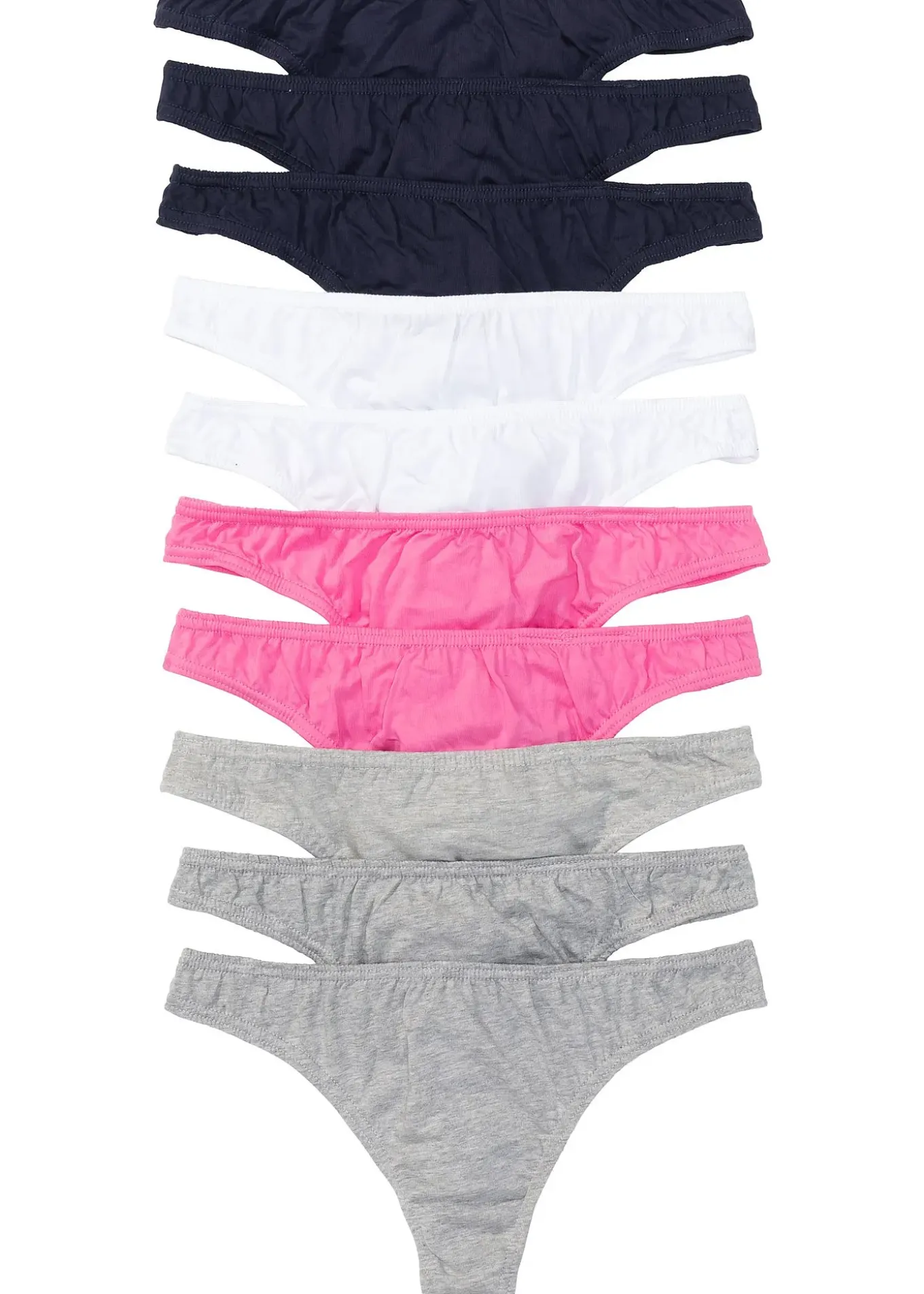 Lot pratique de 10 ravissants strings bpc confortables en coton, proposés en noir, en blanc ou dans des coloris assortis. Gousset également en coton.