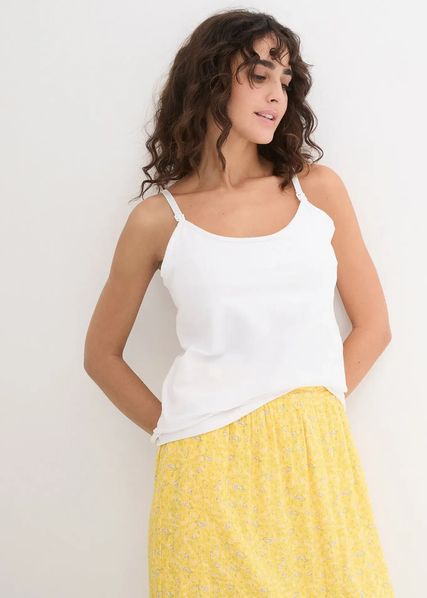 Top de grossesse avec fonction allaitement proposé en lot de 2, clip pratique au décolleté pour faciliter l’allaitement, bretelles réglables en longueur.