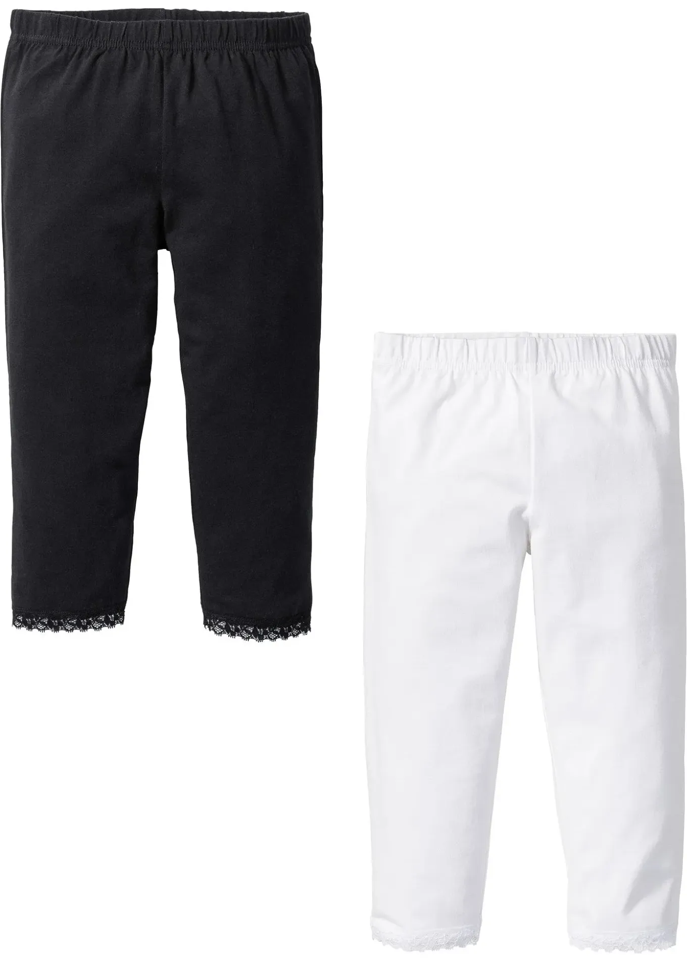 Lot de 2 jolis leggings corsaire avec dentelle fine en bas de jambes, tour de taille confortable avec élastique coulissé pour un ajustement agréable.