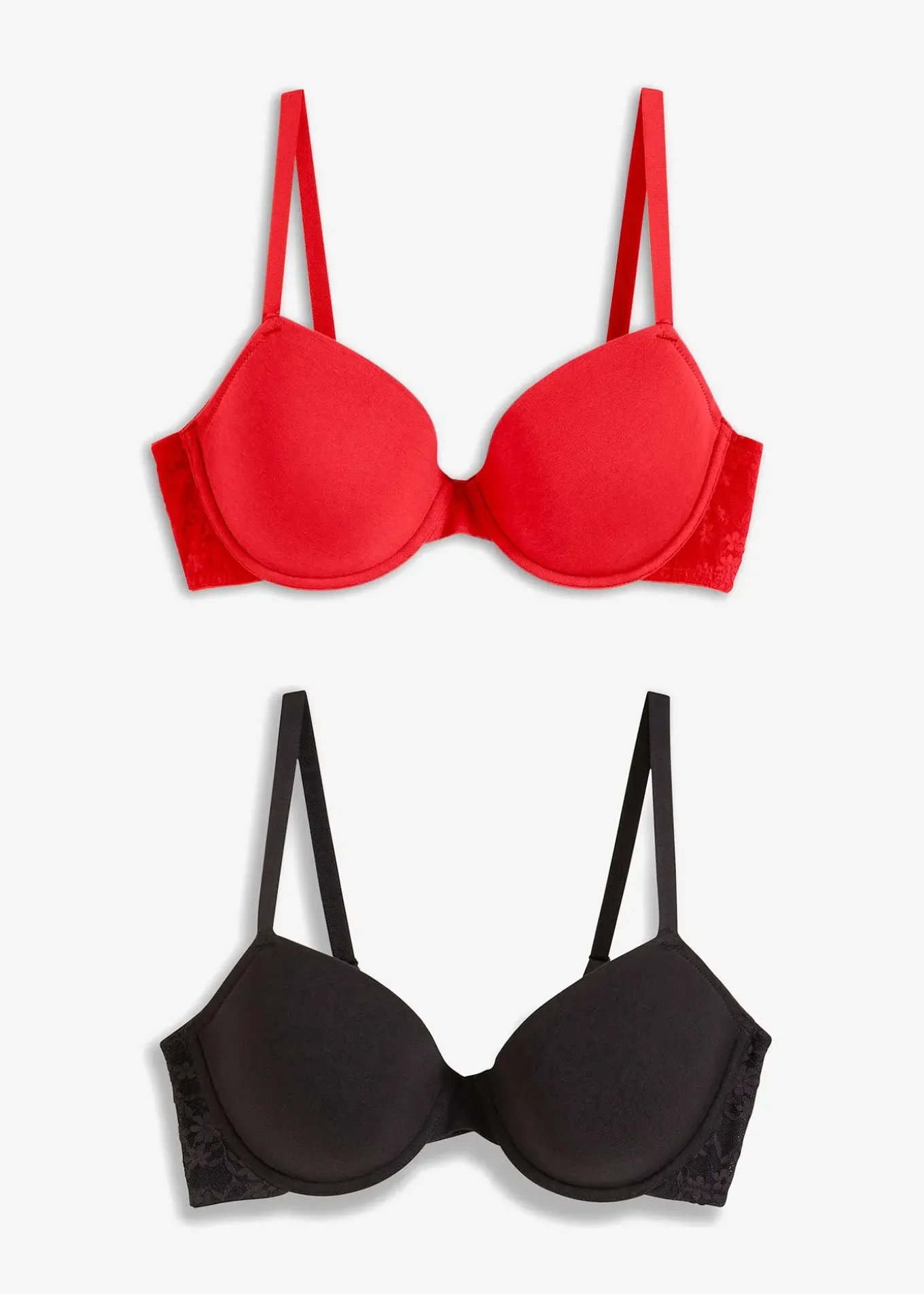 Soutien-gorge coton à coques et armatures, rehaussé d un empiècement en dentelle