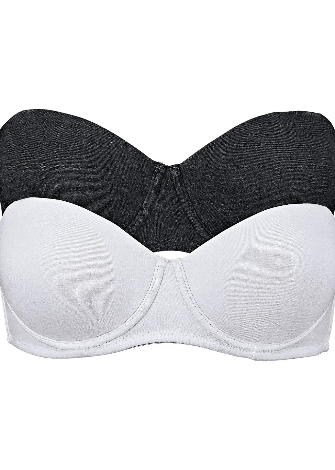 Soutien-gorge balconnet multipositions avec bretelles amovibles de la collection b.p.c. qui peut se porter de 4 façons différentes : en soutien-gorge normal, avec les bretelles croisées au dos, en soutien-gorge dos-nu et en soutien-gorge bandeau (sans les bretelles). Proposé en lot de 2.
