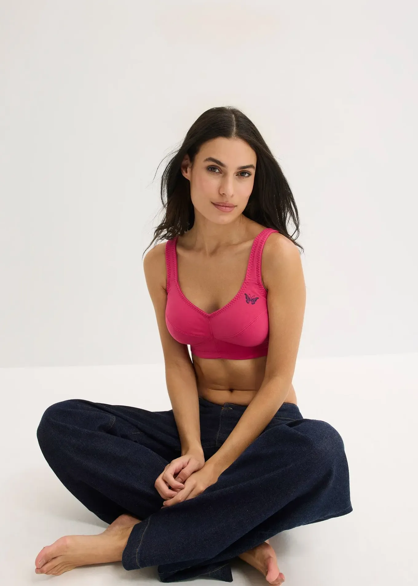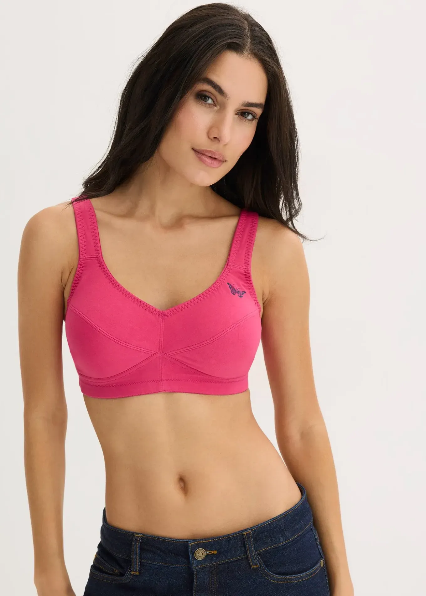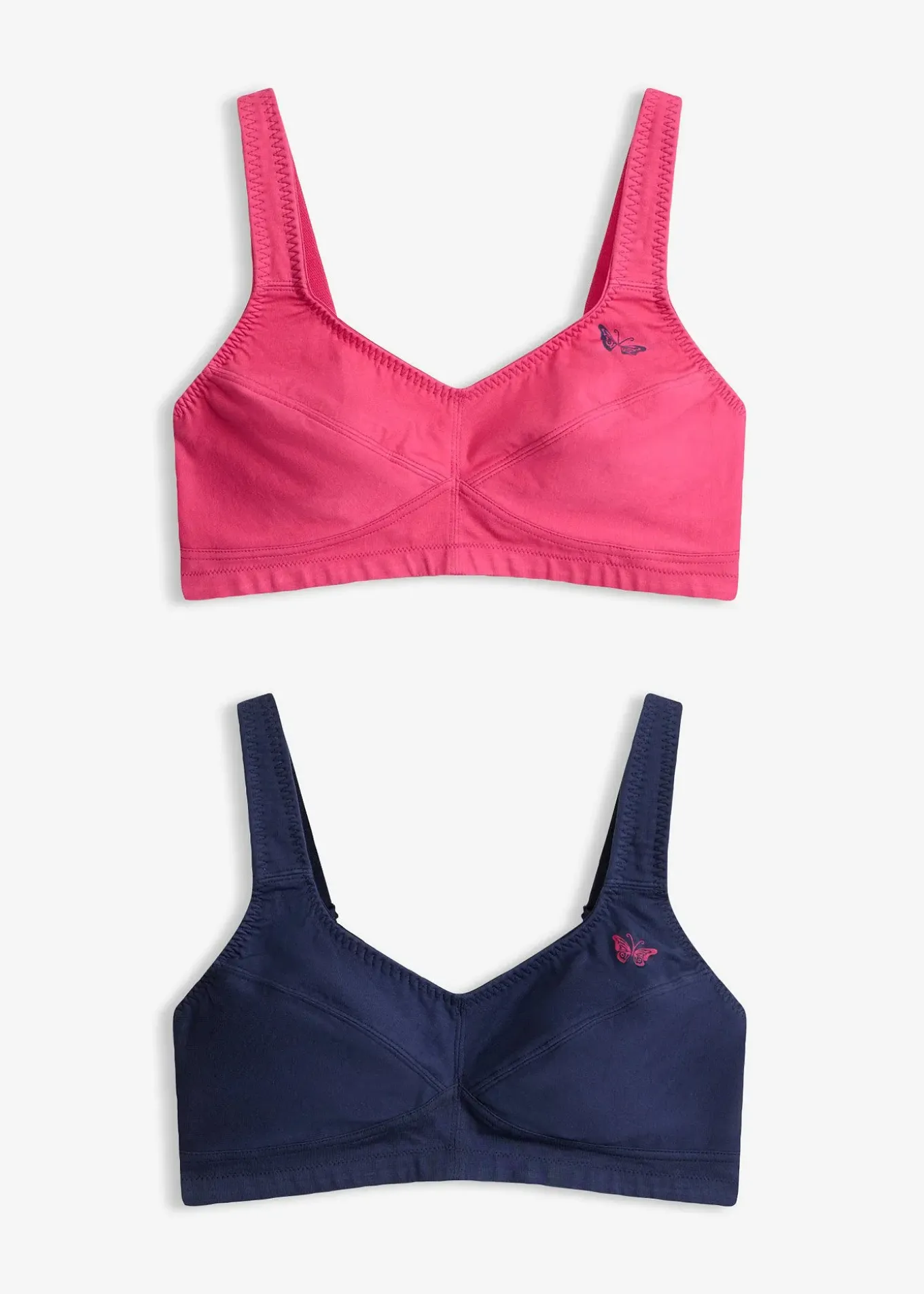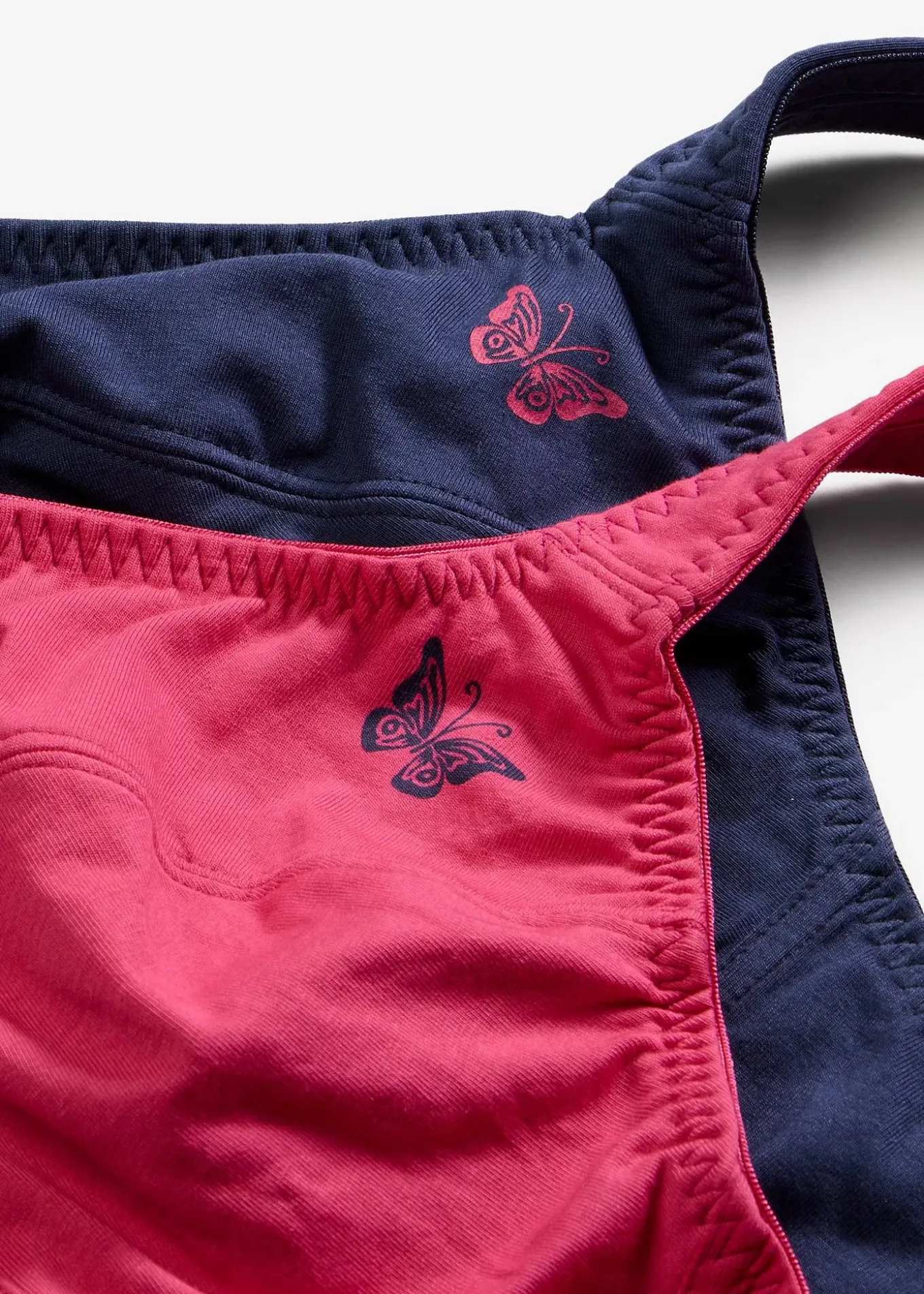 Ce soutien-gorge en coton séduit par son grand confort. Confectionné sans armatures, il est muni de larges bretelles rembourrées. Petit imprimé papillon décoratif. Proposé en lot pratique de 2, il est parfait pour le quotidien.