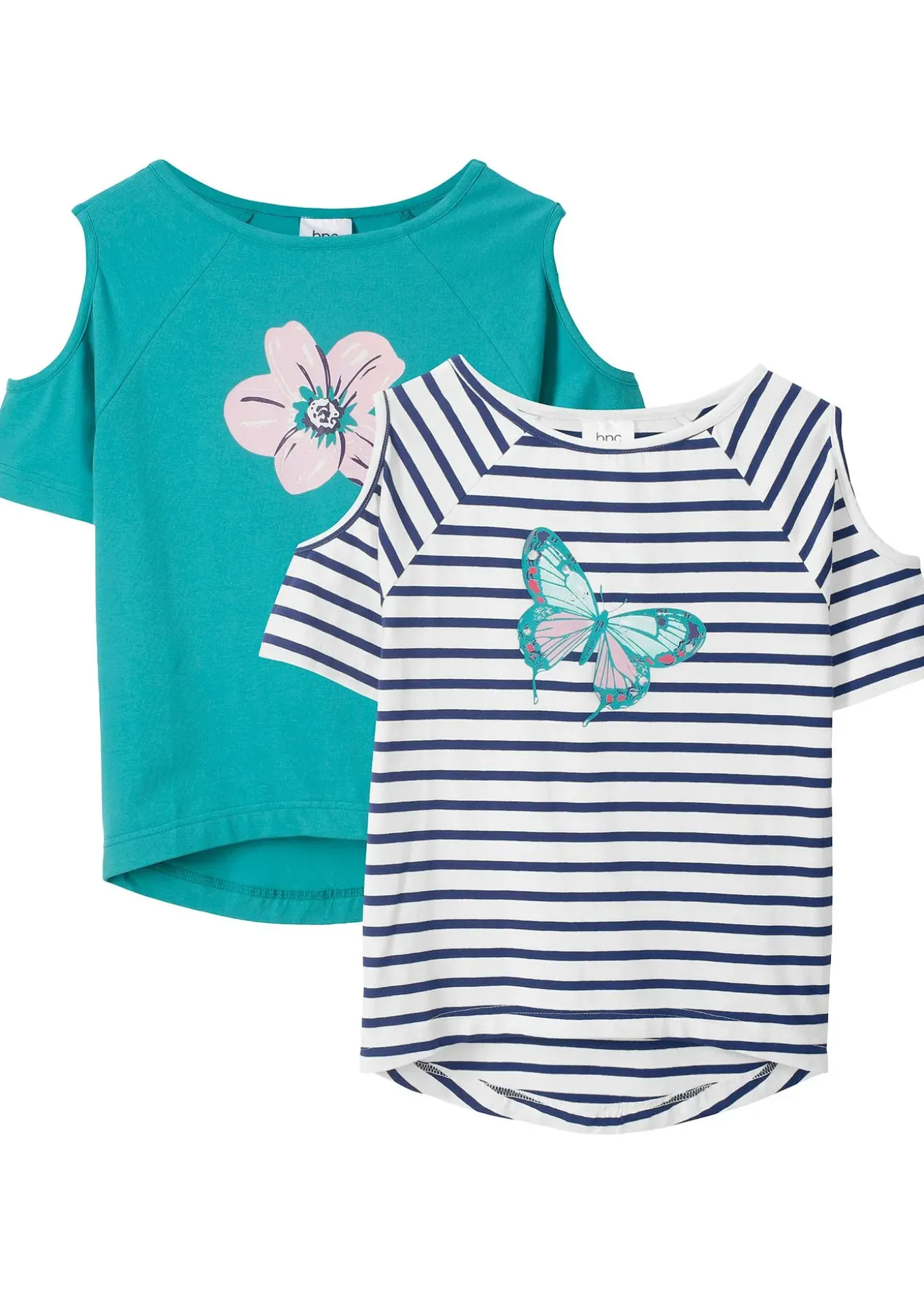 T-shirt décontracté avec des épaules découpées en lot de 2 avec deux motifs différents.