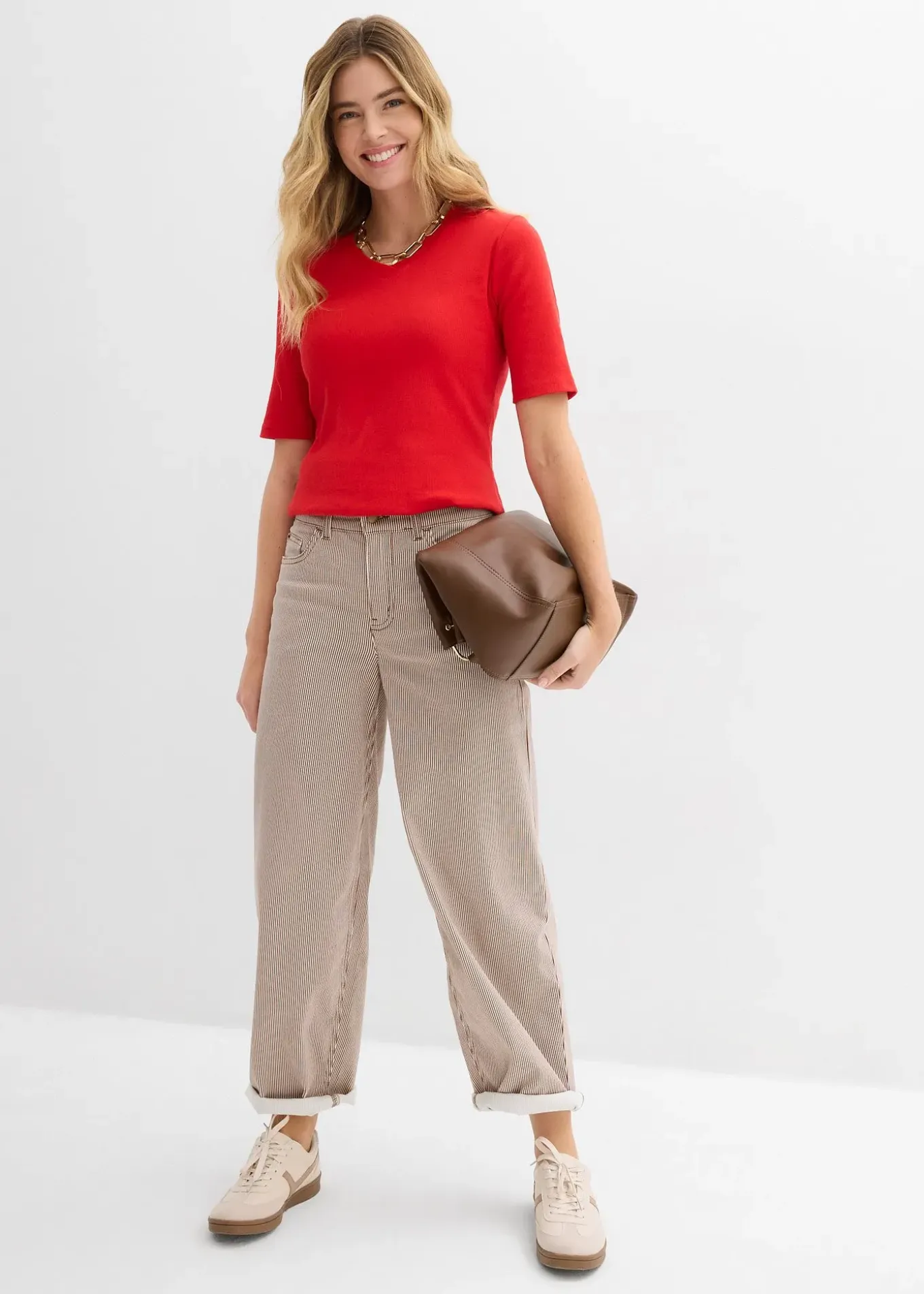T-shirt col V côtelé, facile à combiner