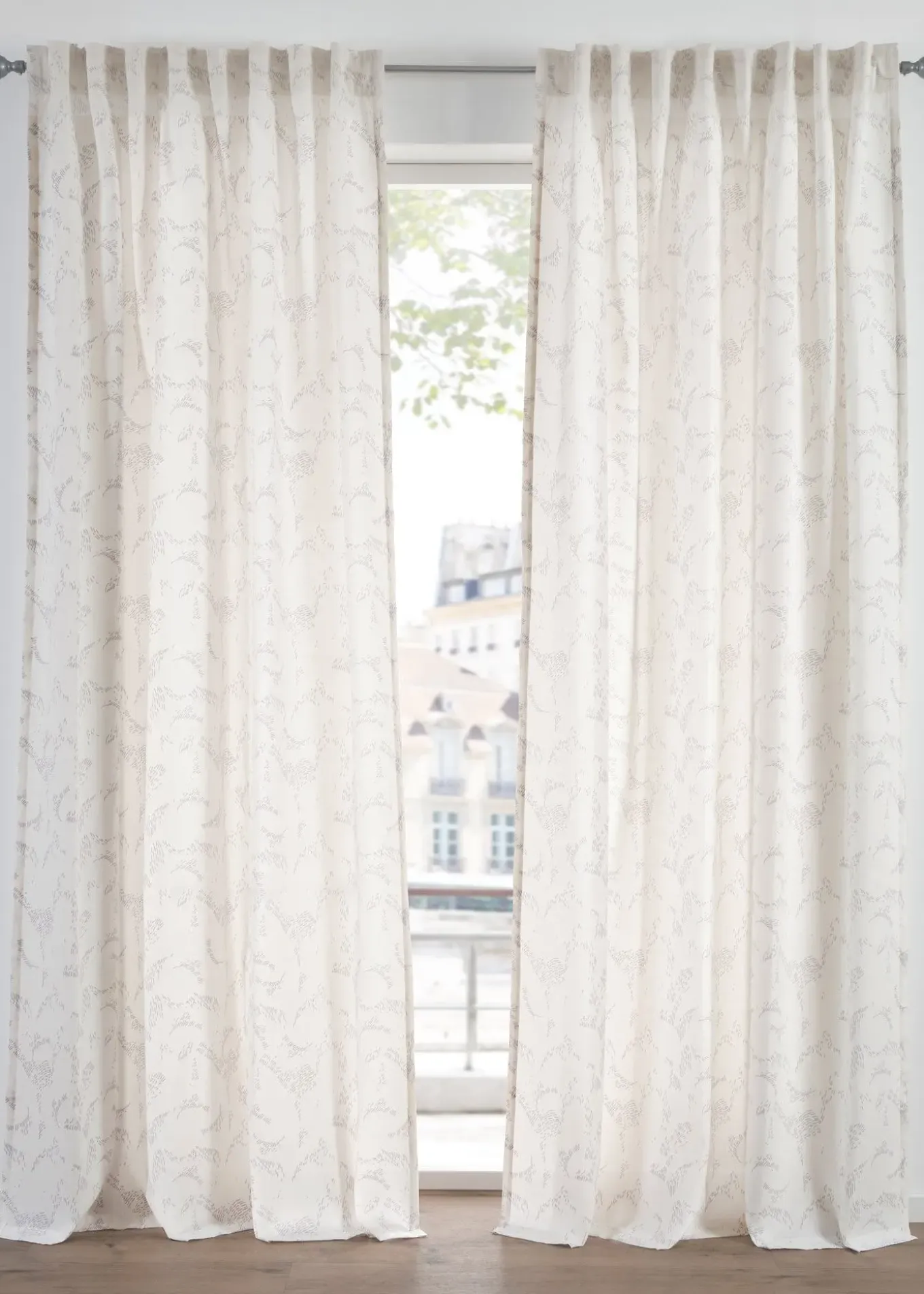 Ce voilage semi-transparent à imprimé discret, frais et moderne décore joliment vos fenêtres. Il est disponible aussi en extra long.