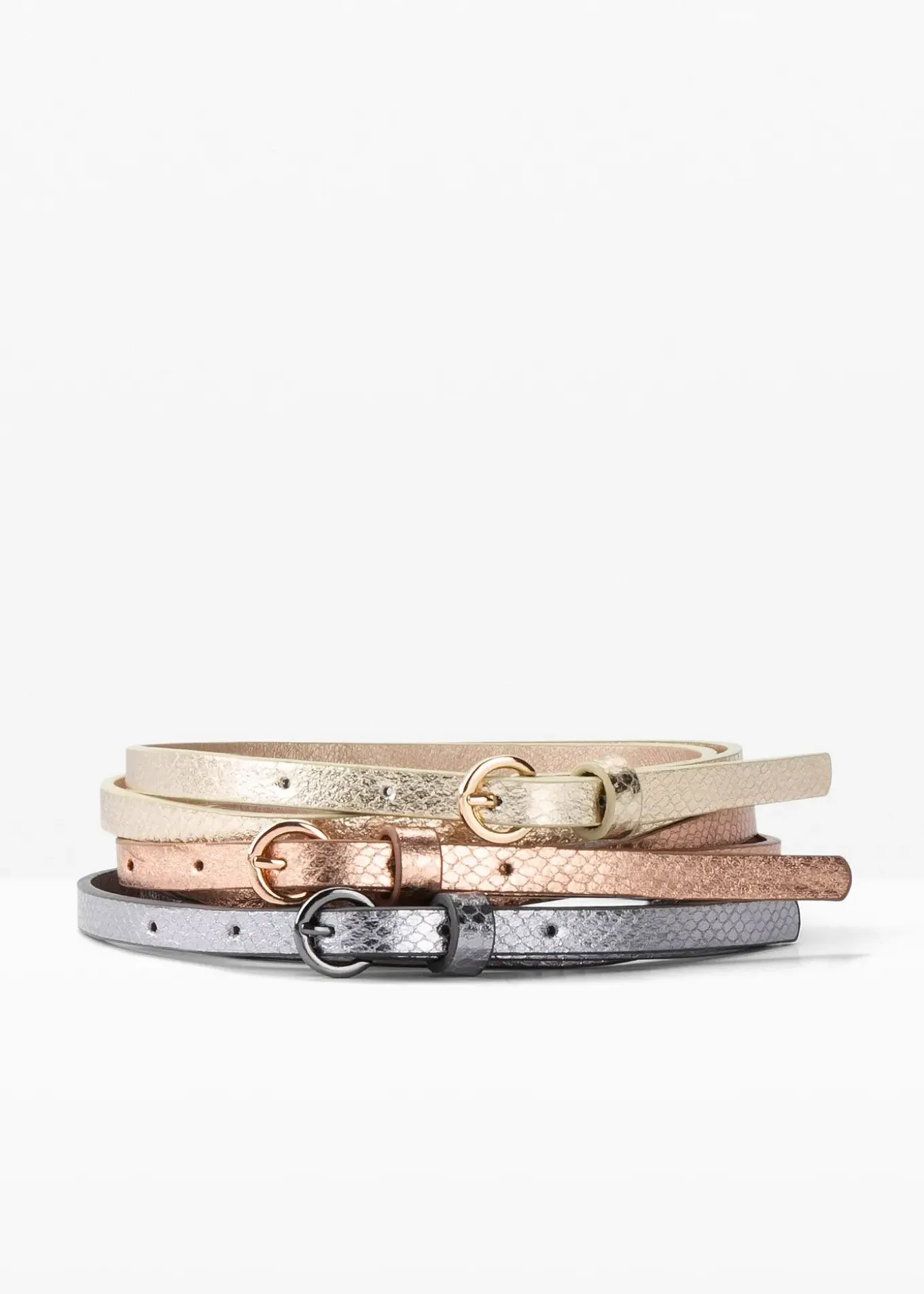 A porter ensemble ou séparément – avec ce set de ceintures, adoptez la tendance métallique jusqu’à la ceinture du pantalon !