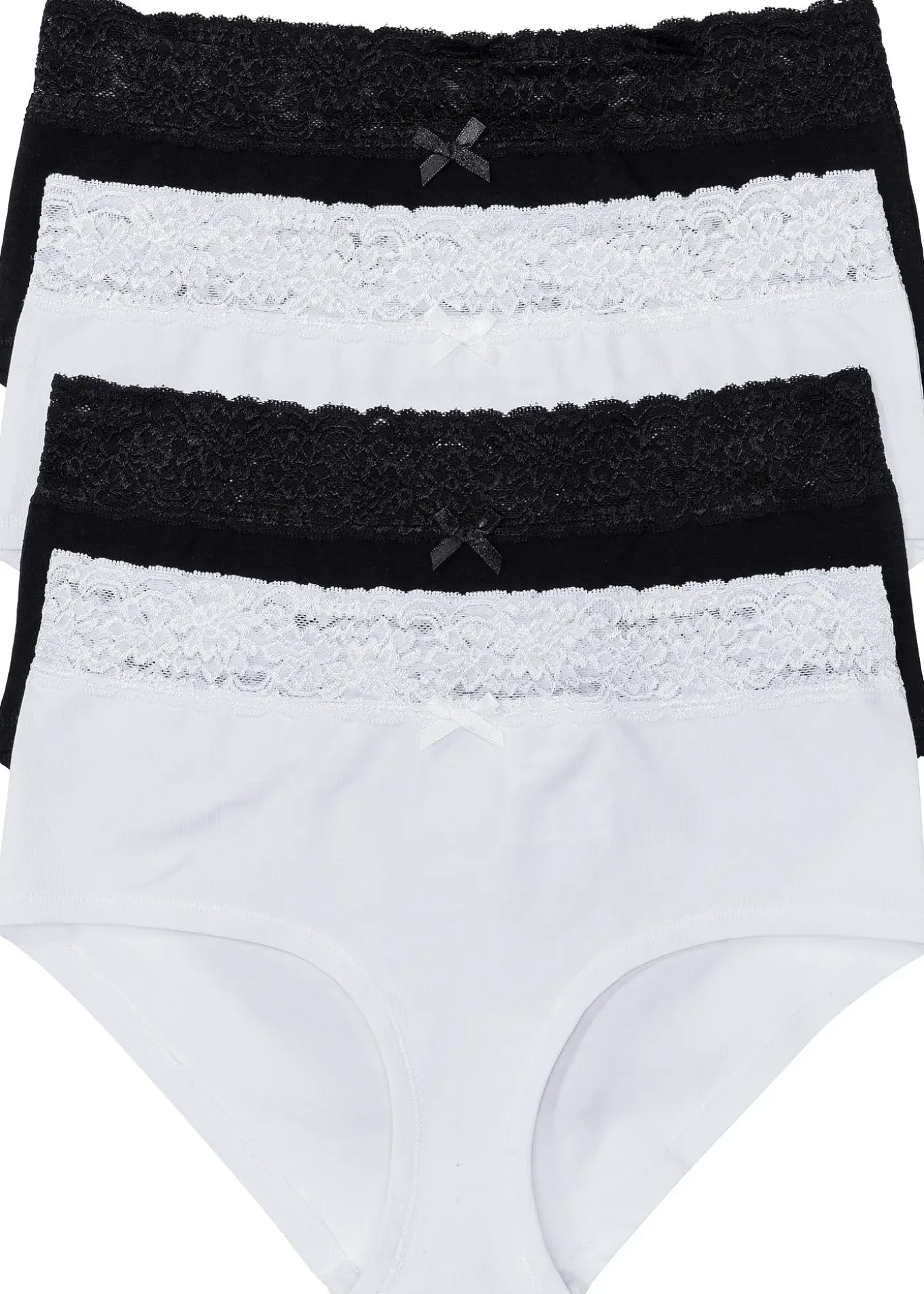 Lot de 4 culottes maxi assorties de la collection bpc avec large empiècement dentelle à la taille et un petit nœud devant. Gousset en coton.