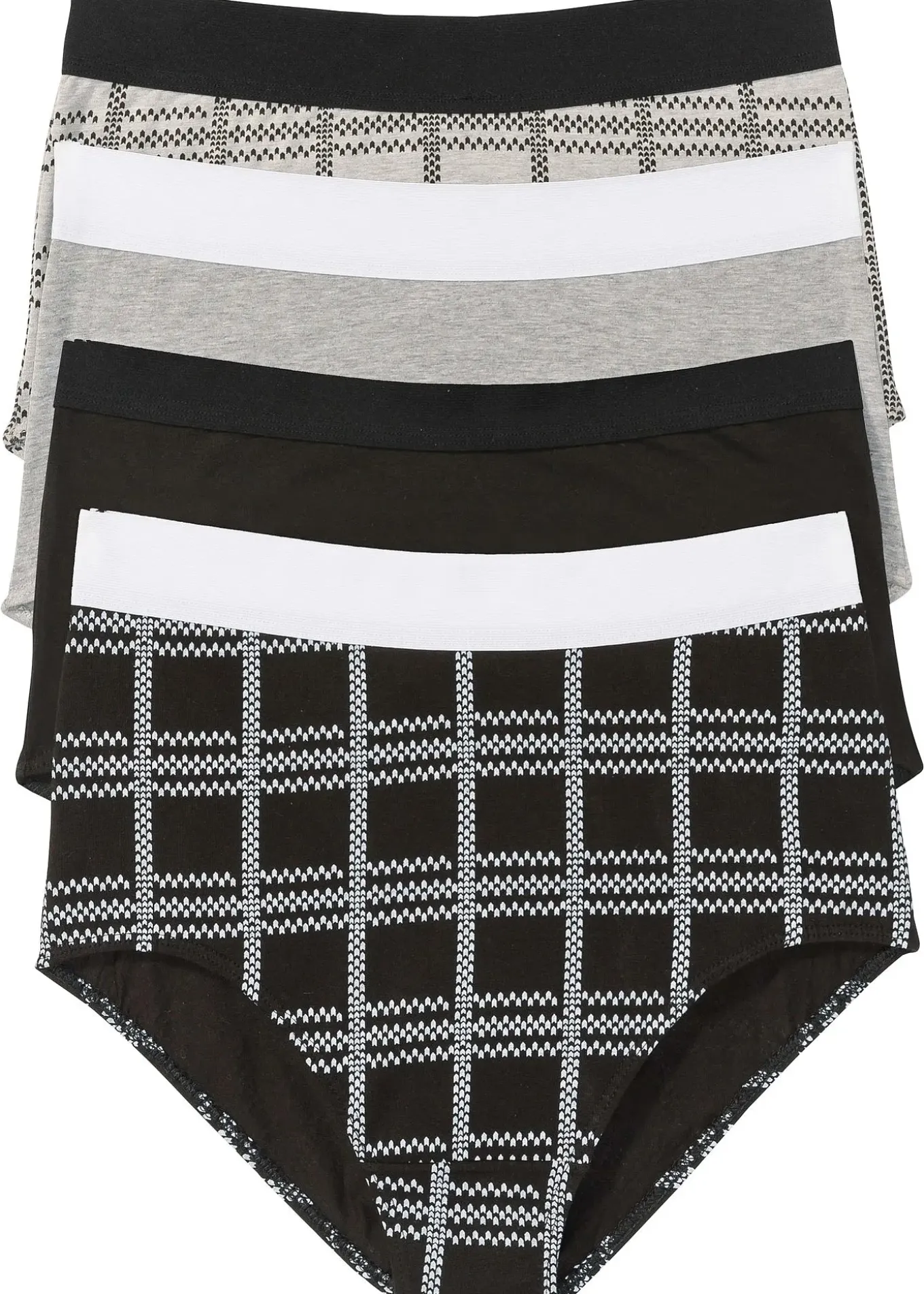 Lot de quatre slips taille haute confortables de bpc selection, pour le quotidien. Matière coton douce, empiècements élastiqués au niveau des jambes et large ceinture souple pour un confort optimal. Gousset en coton.