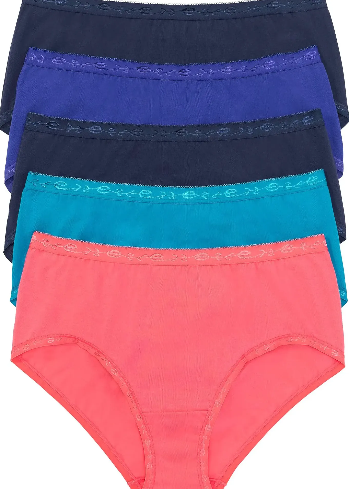 Lot de 5 slips maxi avec décorations à la taille et à l’échancrure.