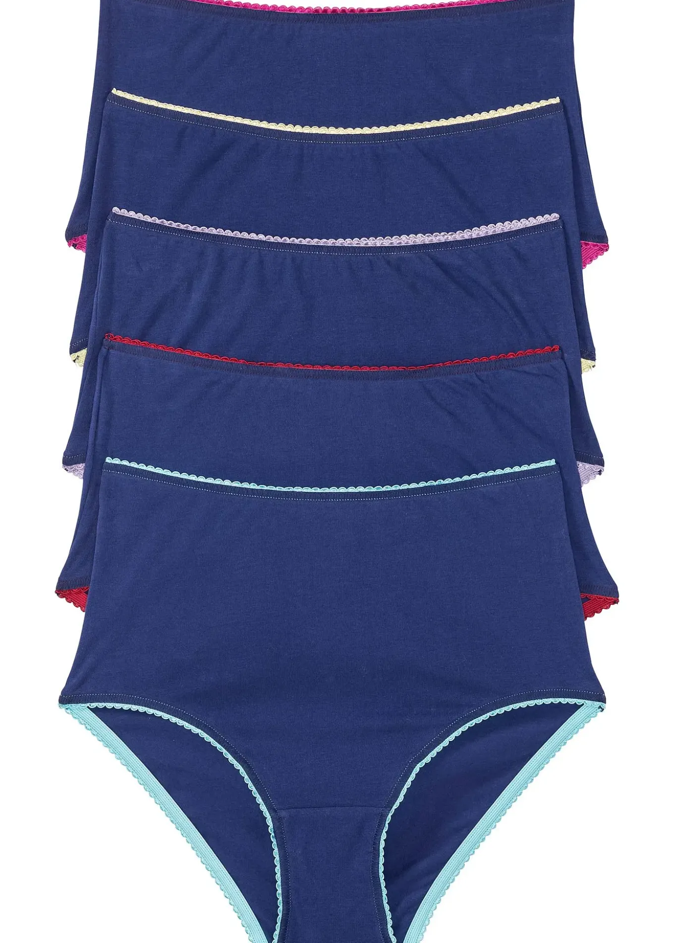 Lot de 5 slips taille haute avec liseré de coloris contrastant