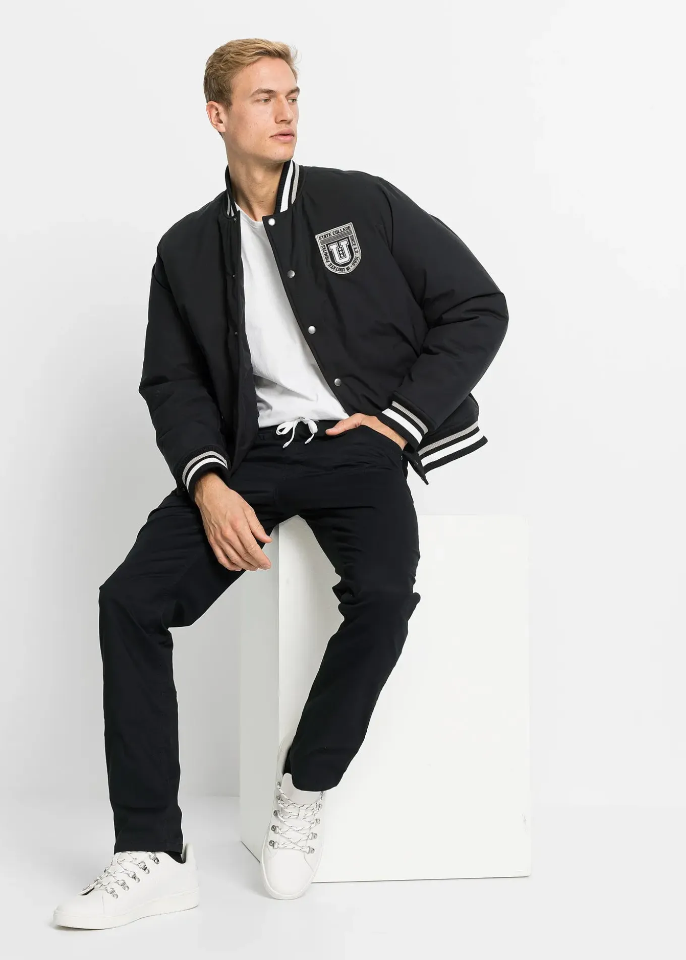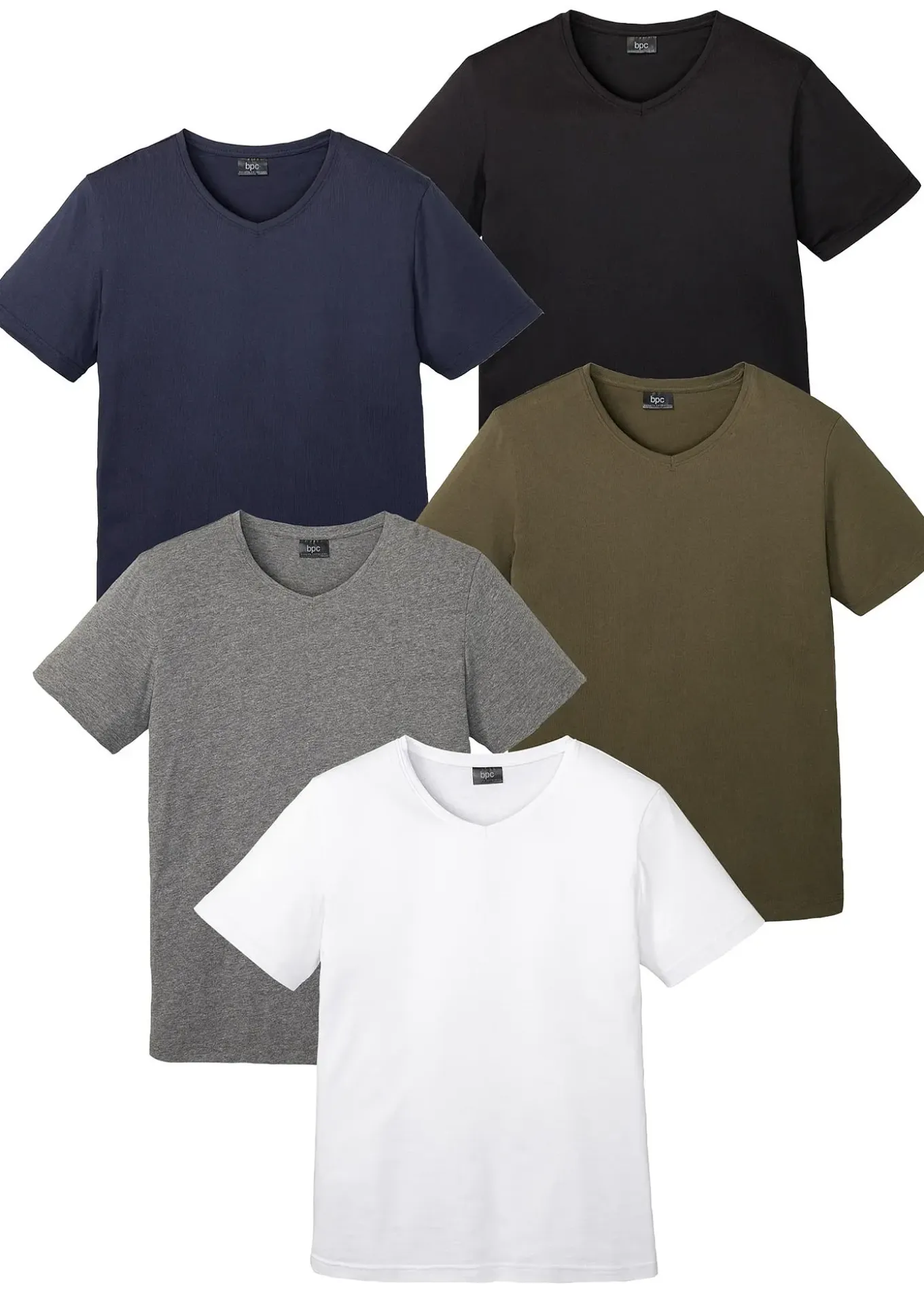 blanc + gris chiné + olive foncé + bleu foncé + noir