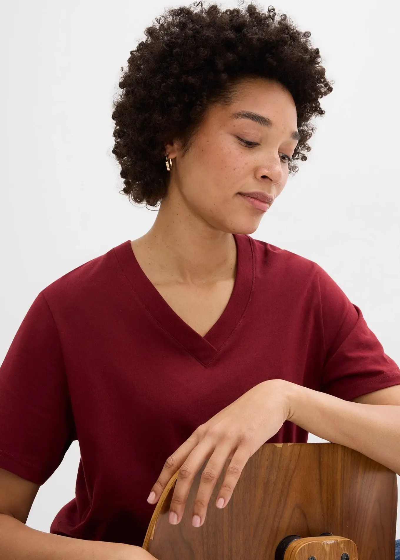 Lot de 5 T-shirts à col V de bpc. Palette de couleurs variées pour de nombreuses combinaisons avec un jean, un short, un chino ou une jupe. Matière douce, longueur confortable, coupe décontractée et agréable.