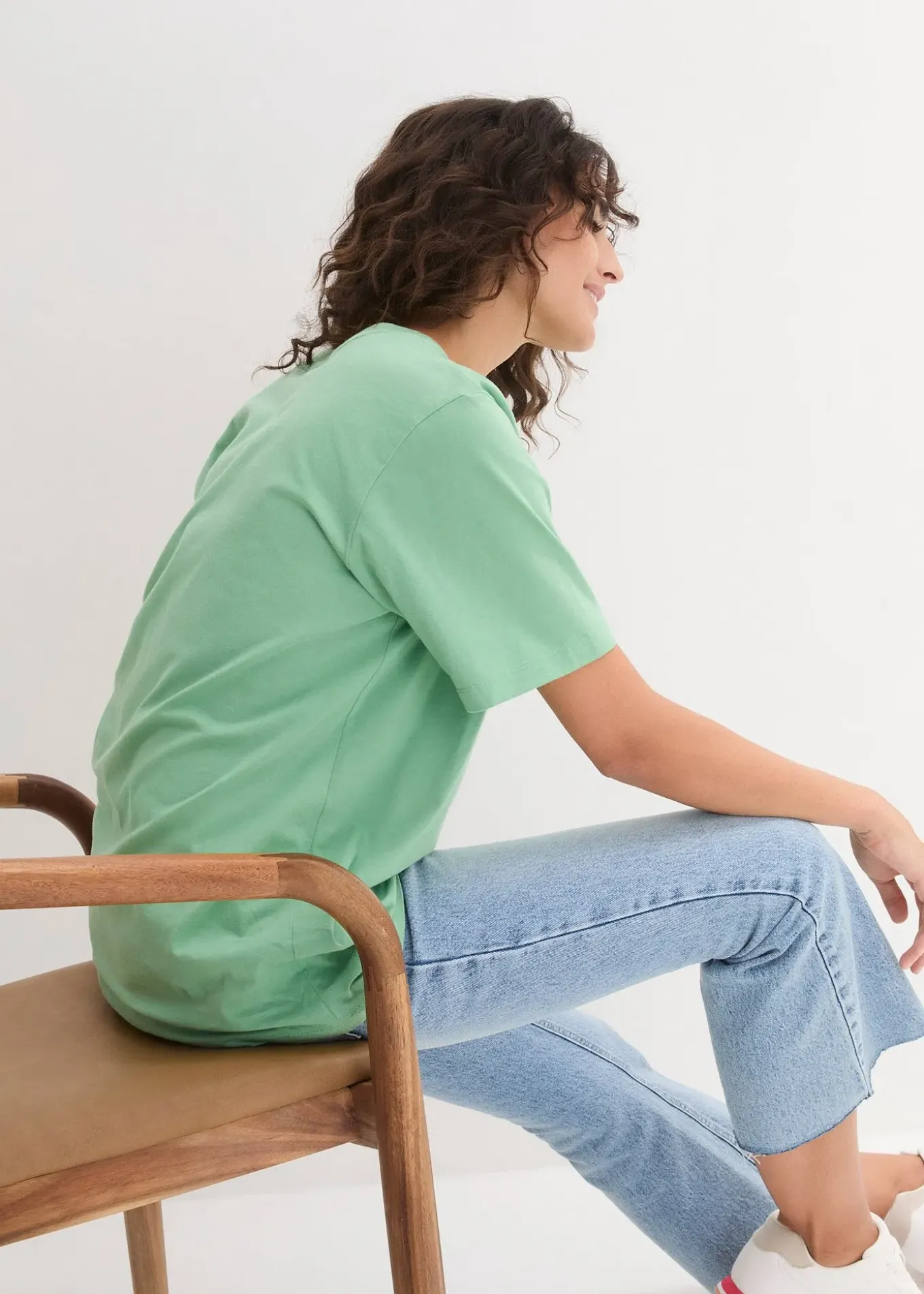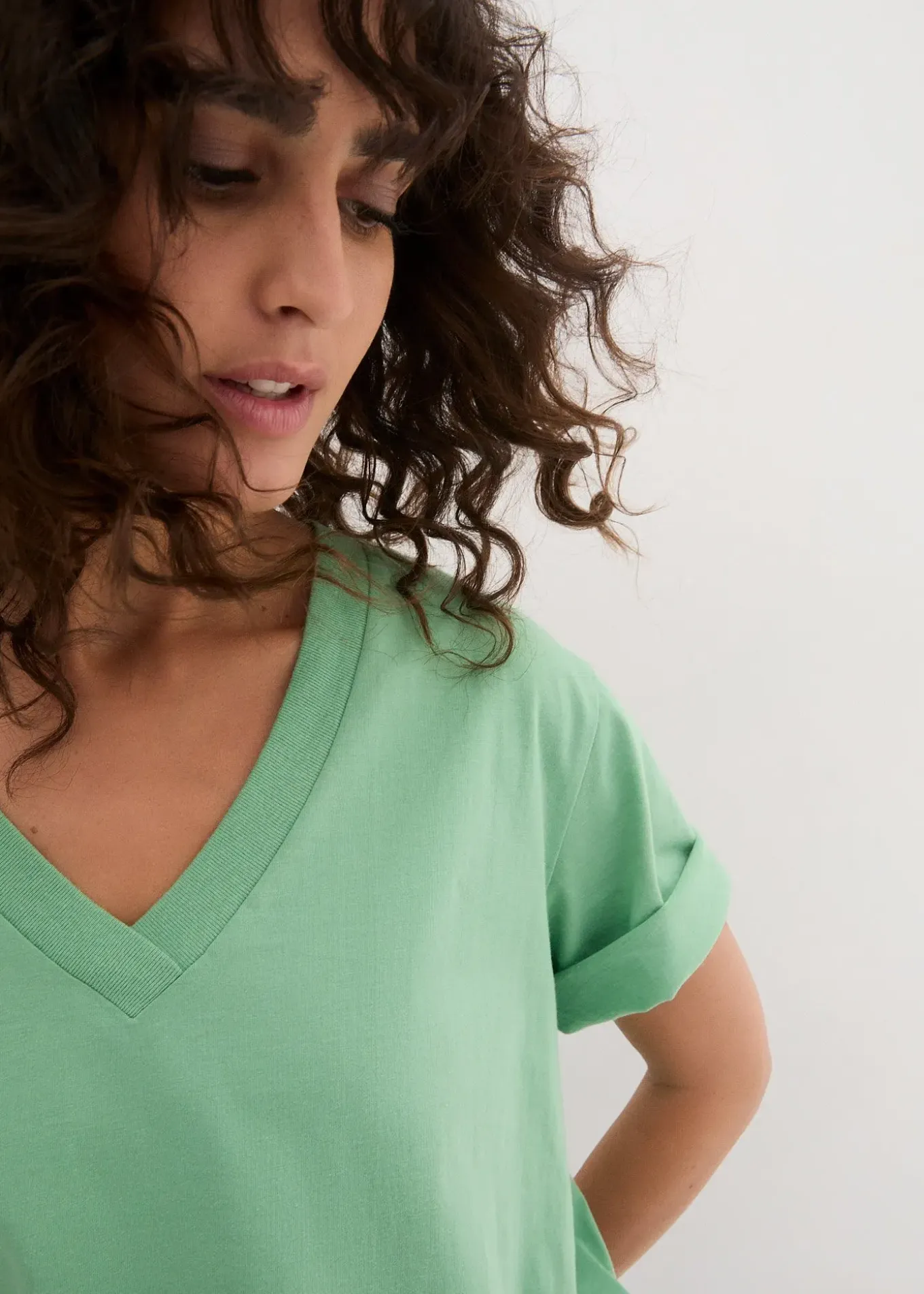 Lot de 5 T-shirts à col V de bpc. Palette de couleurs variées pour de nombreuses combinaisons avec un jean, un short, un chino ou une jupe. Matière douce, longueur confortable, coupe décontractée et agréable.