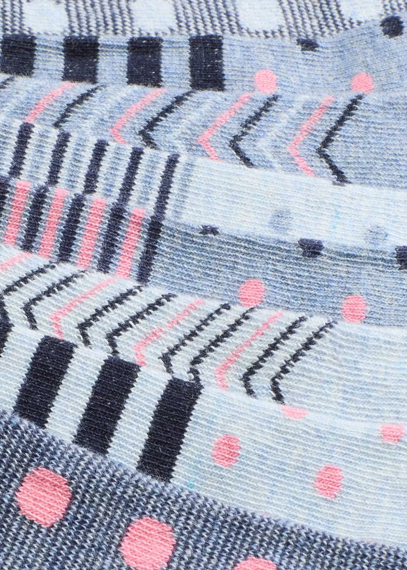 bleu foncé + rose + bleu clair chiné + bleu chiné