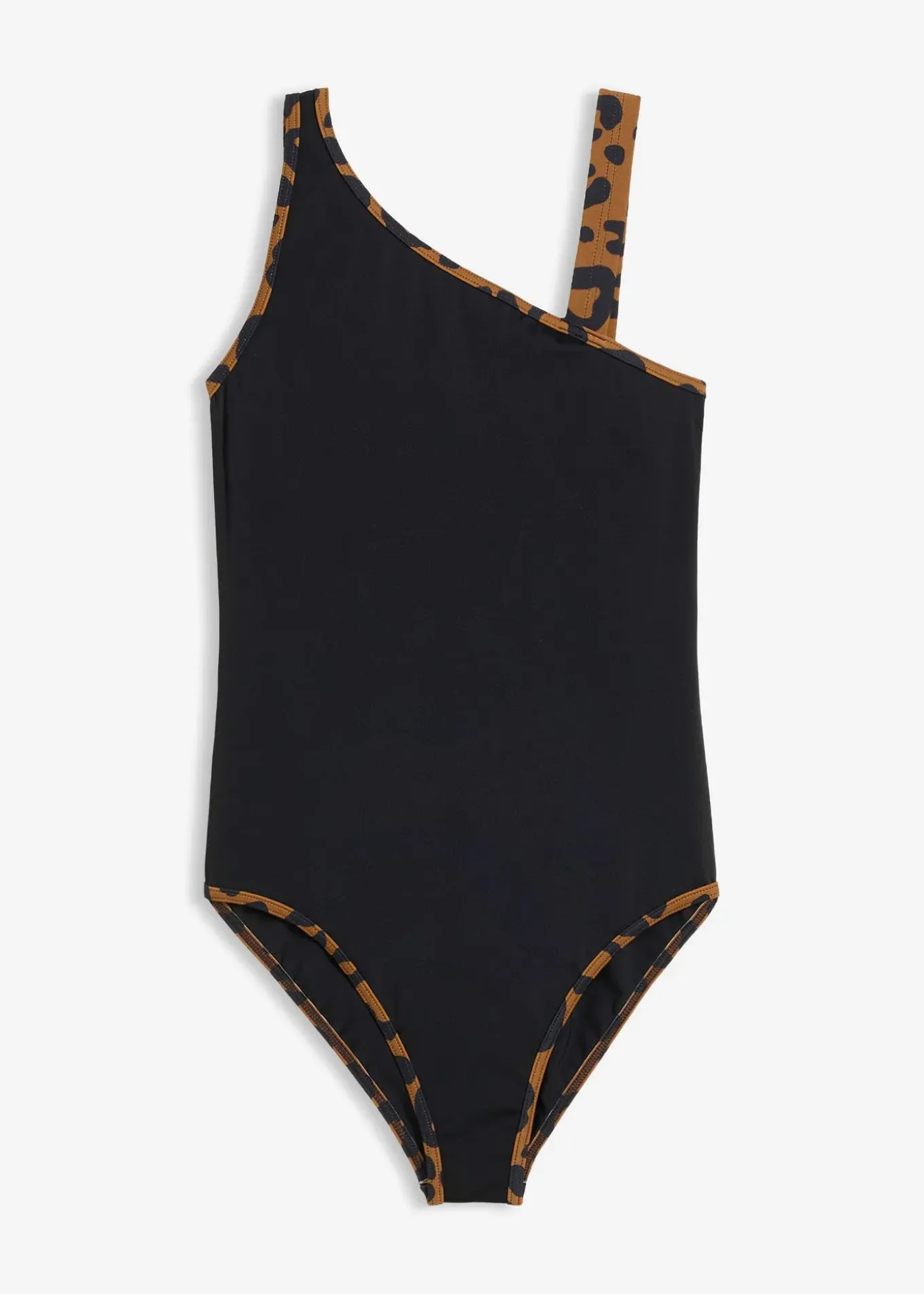 Maillot 1 pièce stylé pour fille avec détails léopard et coupe une épaule