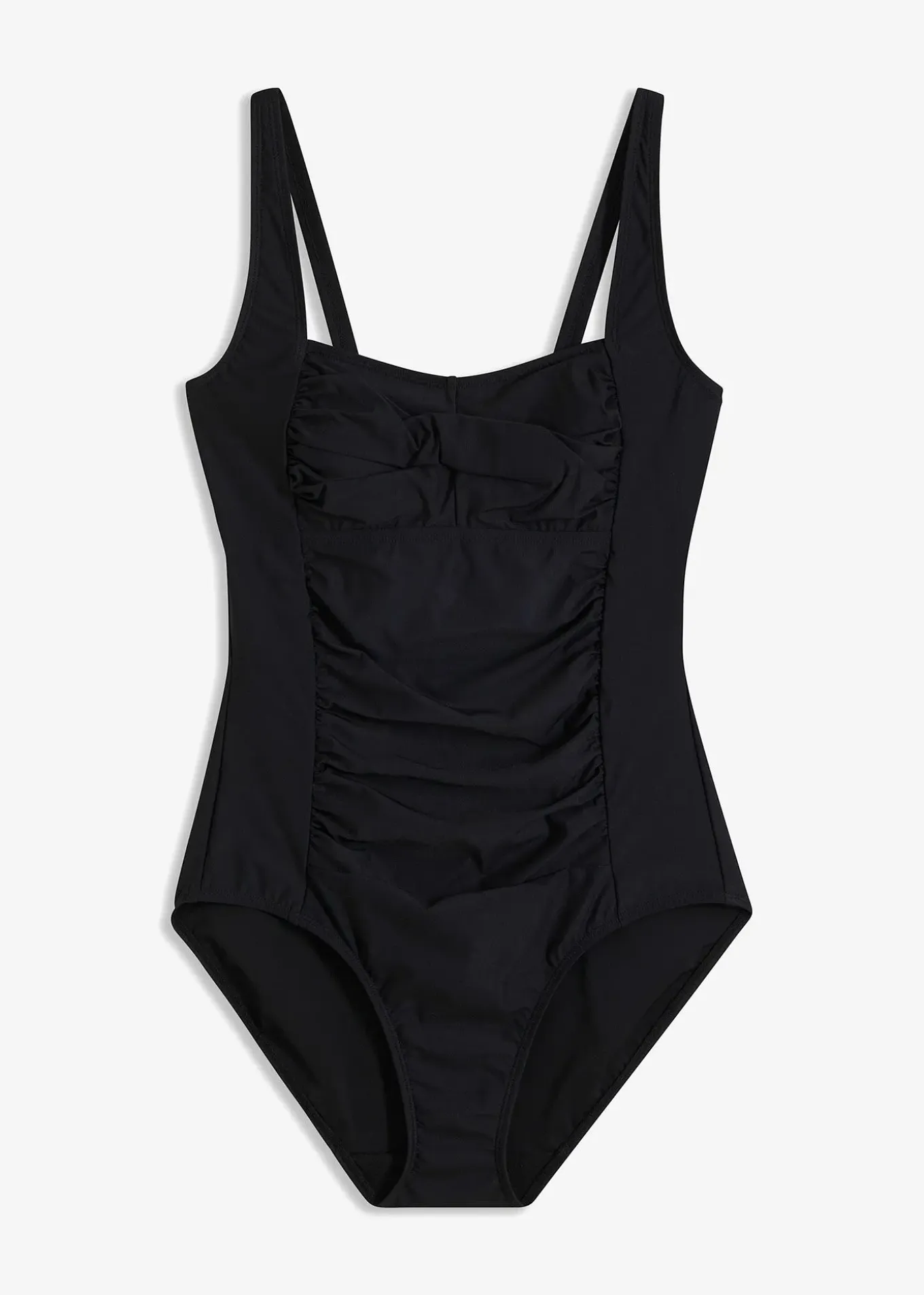 Dans la sélection de Maite Kelly : la matière gainante de ce maillot de bain 1 pièce de bpc procure un ajustement optimal. L’effet sculptant dessine une silhouette harmonieuse. Ce maillot 1 pièce avec fronces et décolleté style cache-cœur est très agréable à porter grâce à ses coques souples intégrées. La doublure modelante et la coupe spéciale font de ce maillot de bain un modèle sensationnel. Ce maillot 1 pièce s’ajuste à chaque silhouette grâce à ses bretelles réglables.