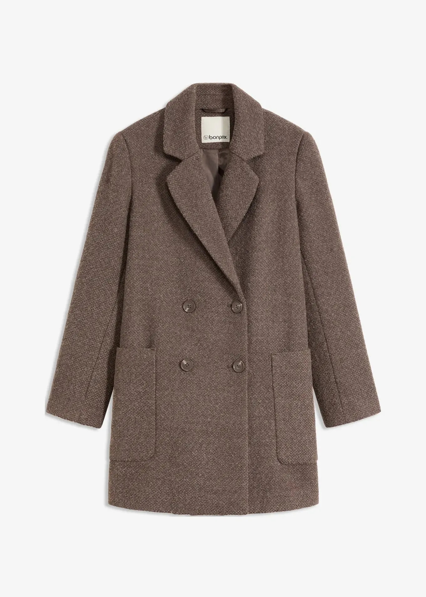 Manteau court et croisé aspect chiné dans une coupe confortable