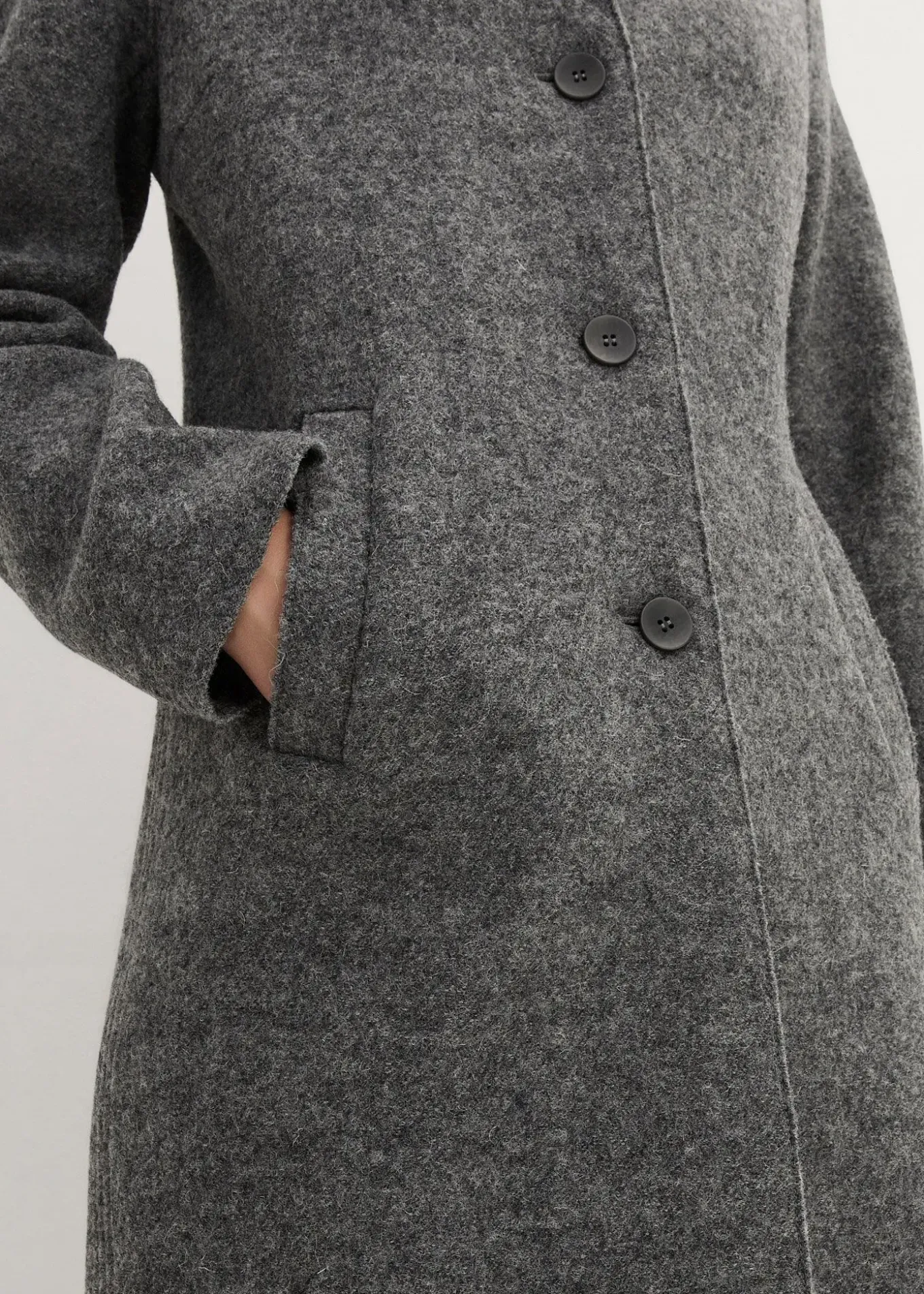 Manteau étroit en laine foulée. Très chaud, fabriqué en Europe.