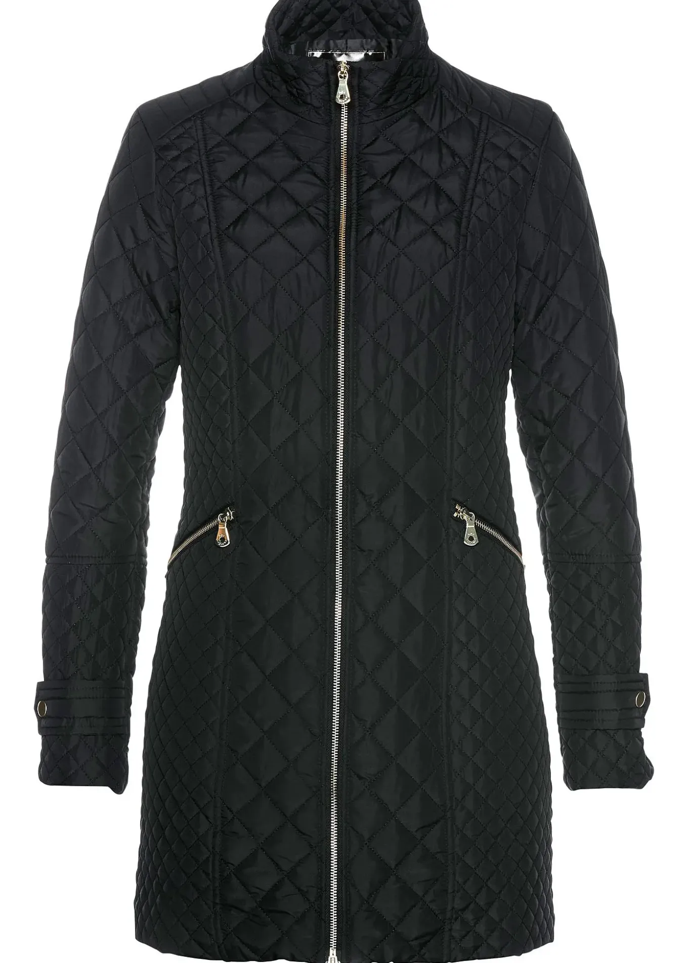 Manteau chic avec différents motifs matelassés et col montant, zips dorés sur le devant et sur les poches, long. env. 82 cm (pour toutes les tailles), lavage machine.