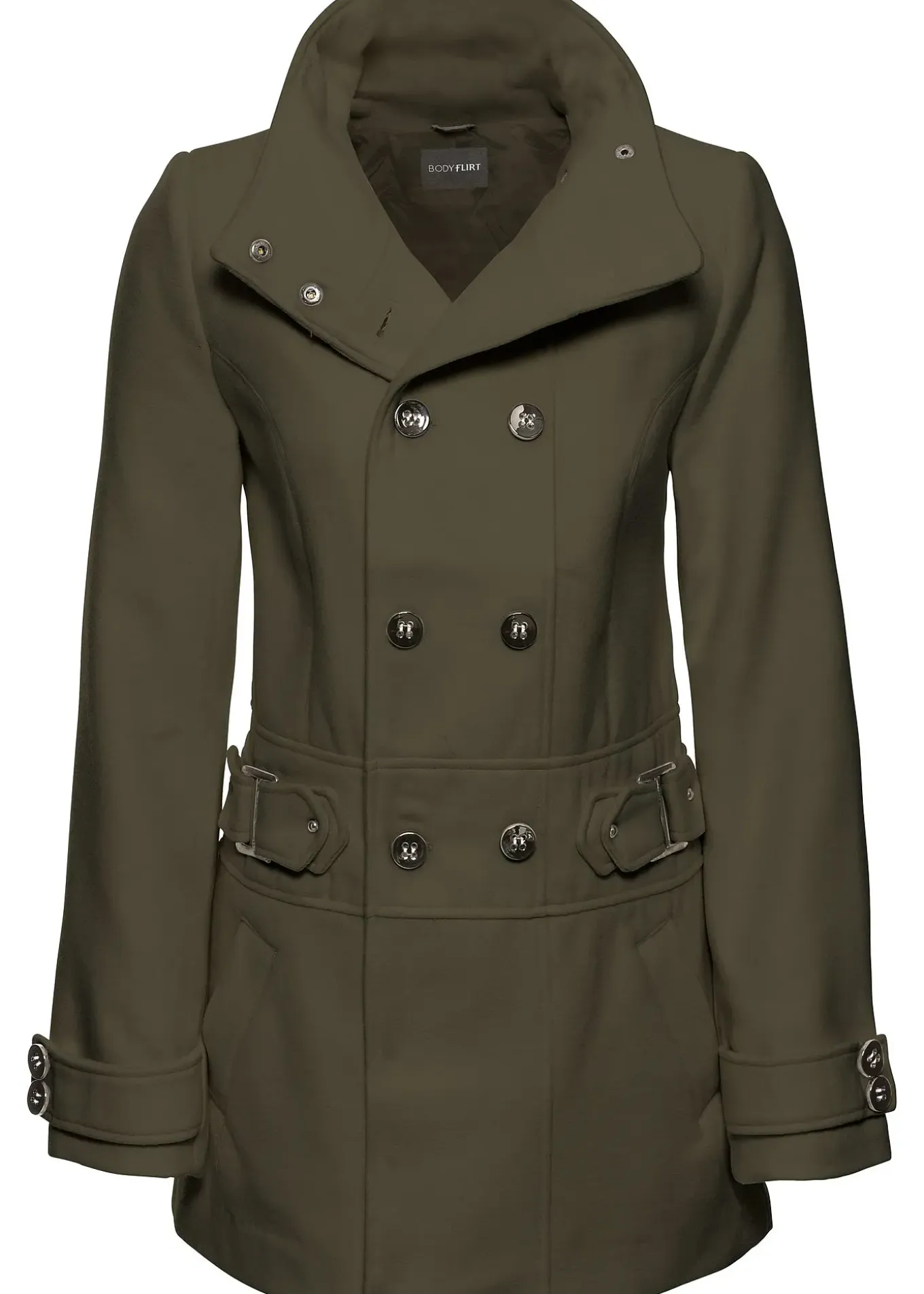 Manteau court mode avec col montant et double boutonnage, petite stature