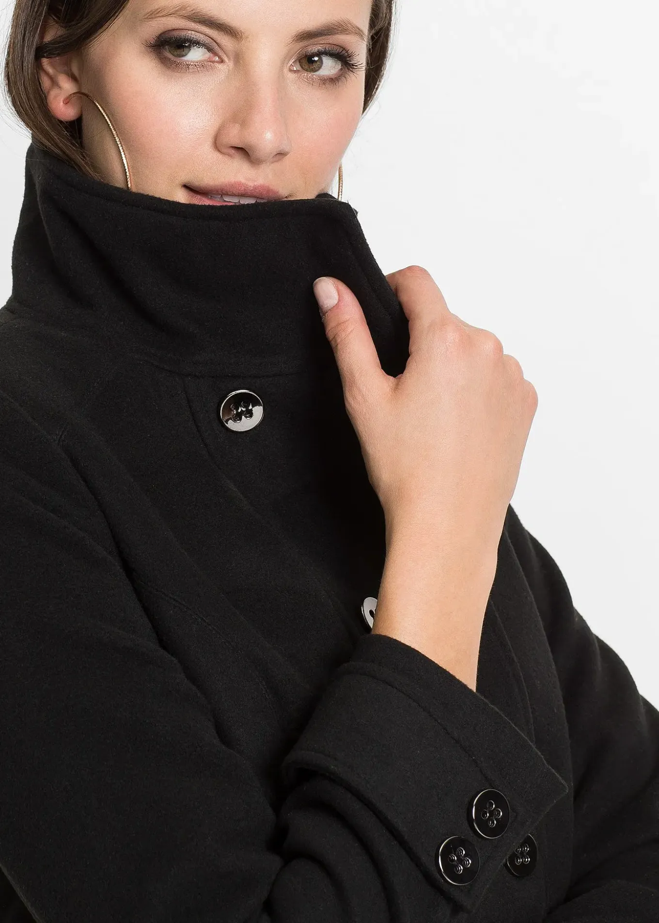 Manteau court mode avec col montant et double boutonnage, petite stature