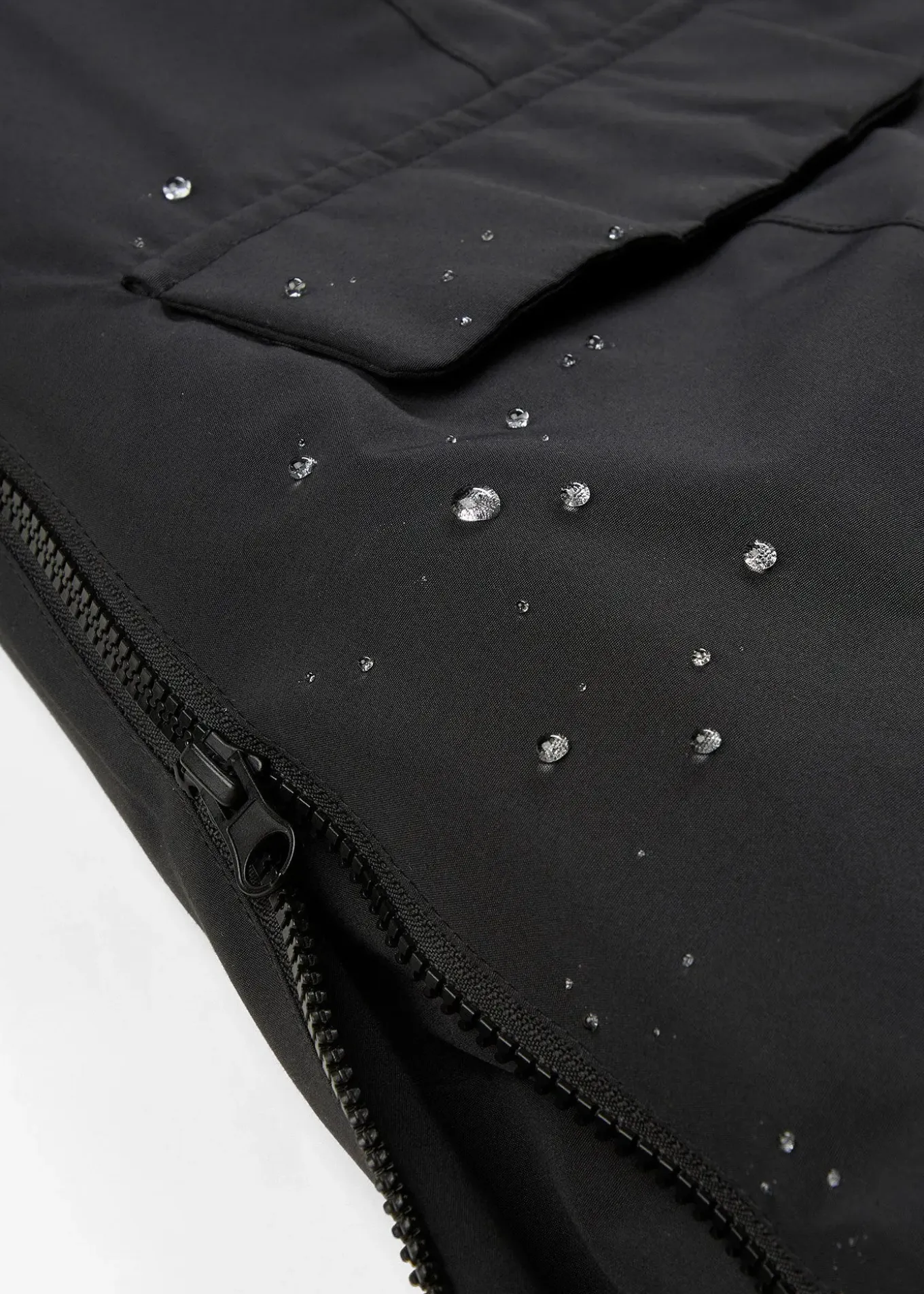 Manteau de grossesse rembourré dans un tissu technique et imperméable. Doté d’un empiècement pour bébé, ce manteau peut également se porter après la naissance. Fermeture zippée sur le devant, zips sur les côtés pour ajuster l’ampleur.