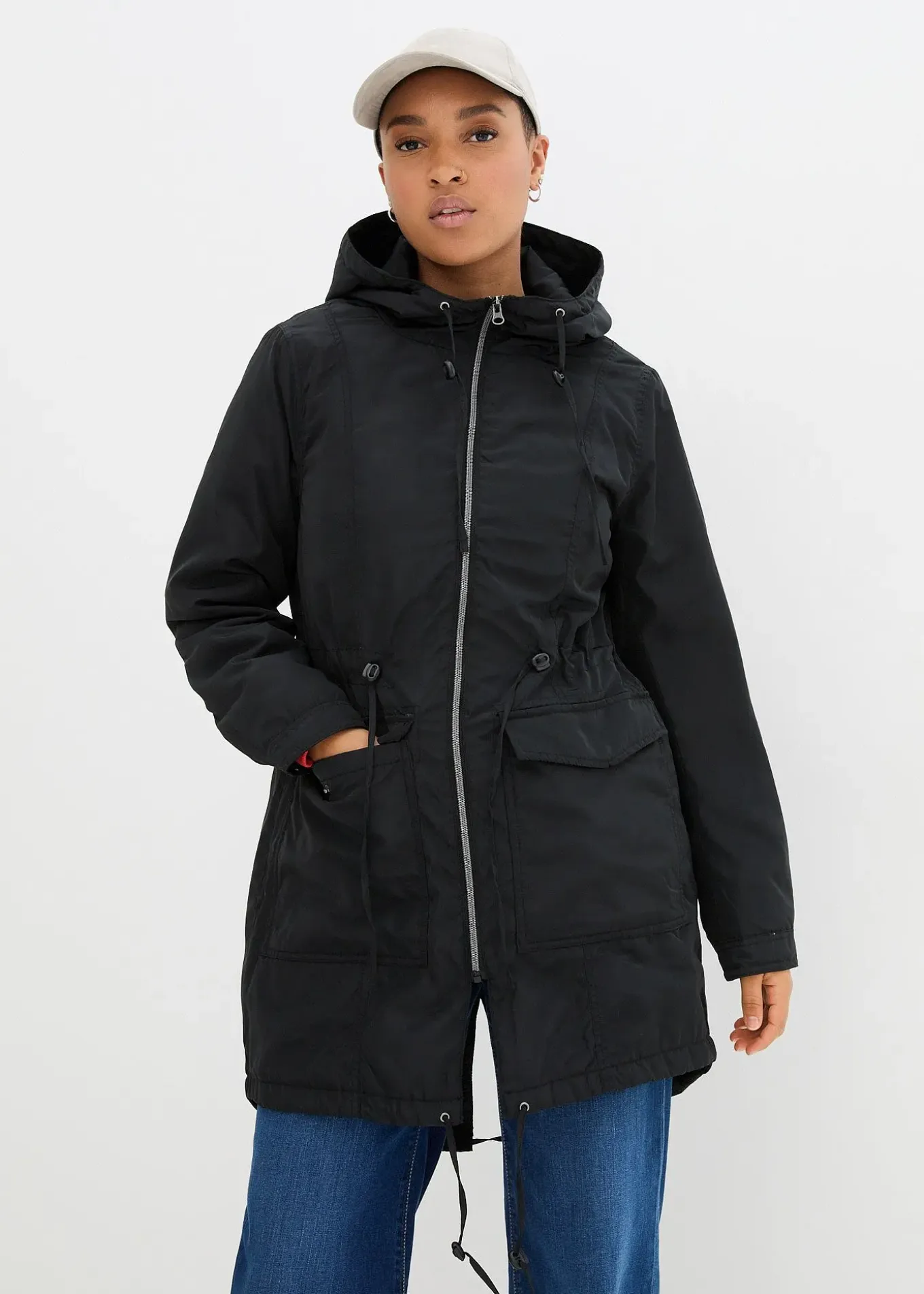 Manteau bpc confortable et légèrement doublé, pourvu d’un cordon de serrage à la taille, d’une fermeture par zip, de deux grandes poches et d’une base arrondie.