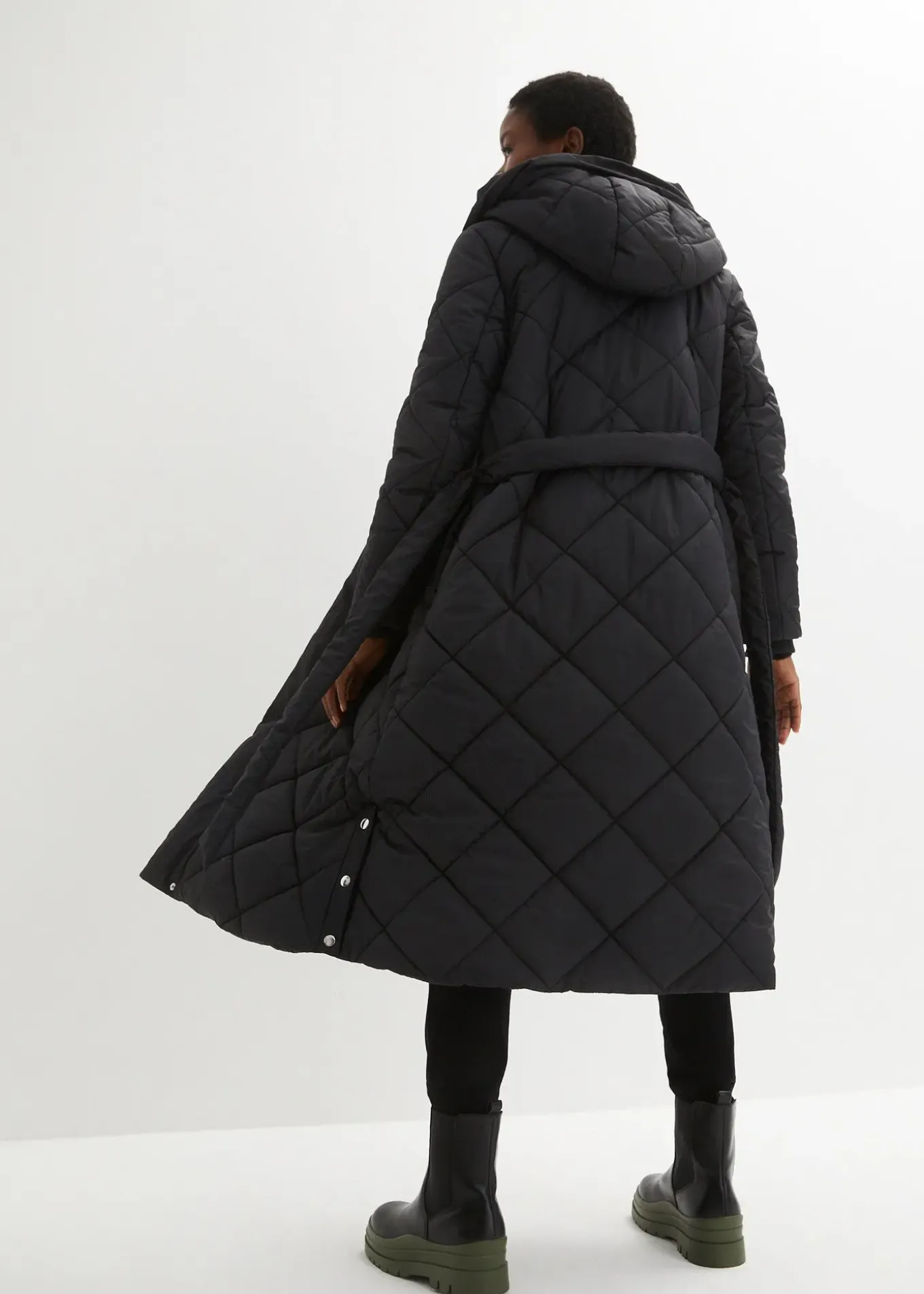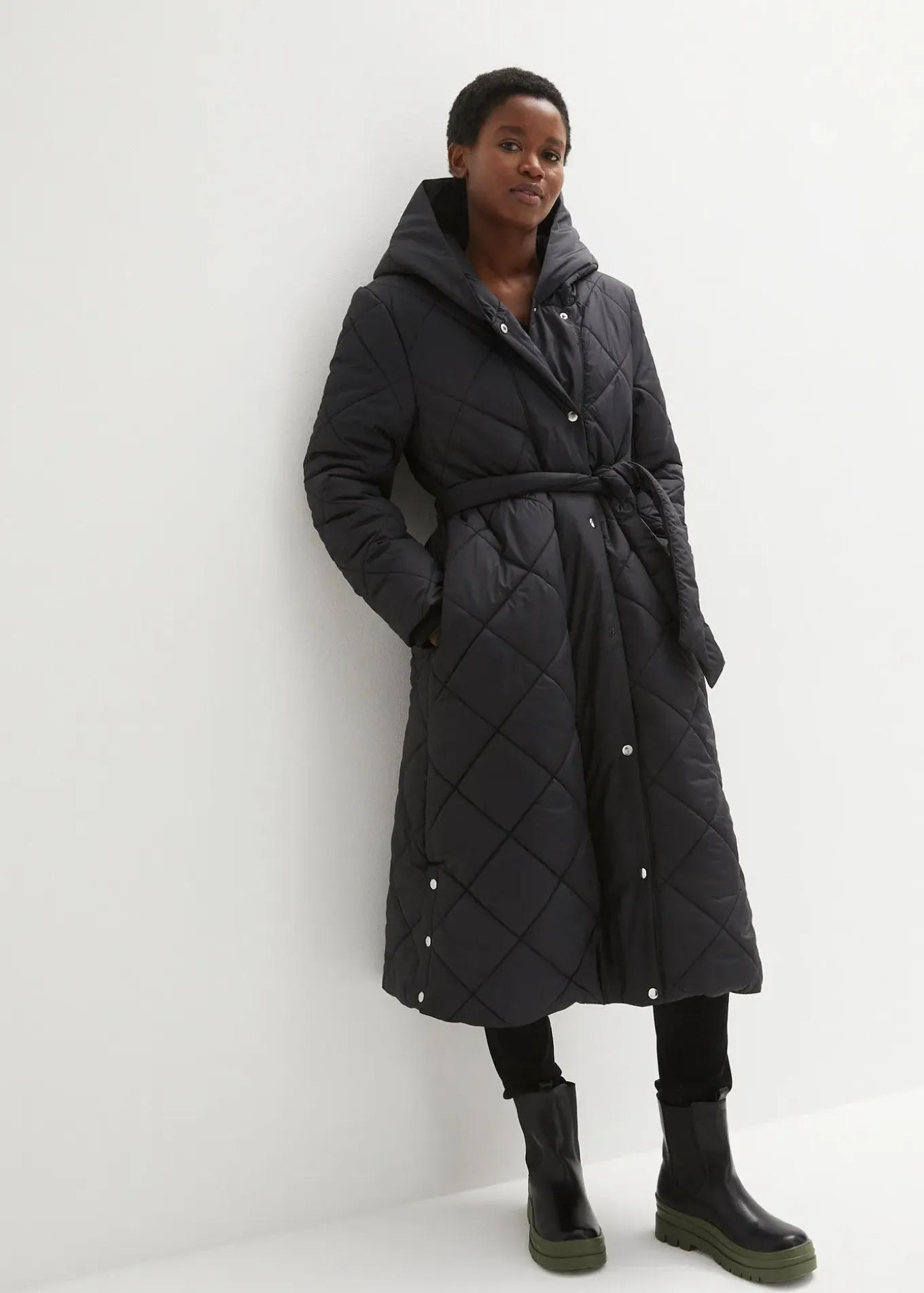 Manteau long matelassé avec ceinture à nouer