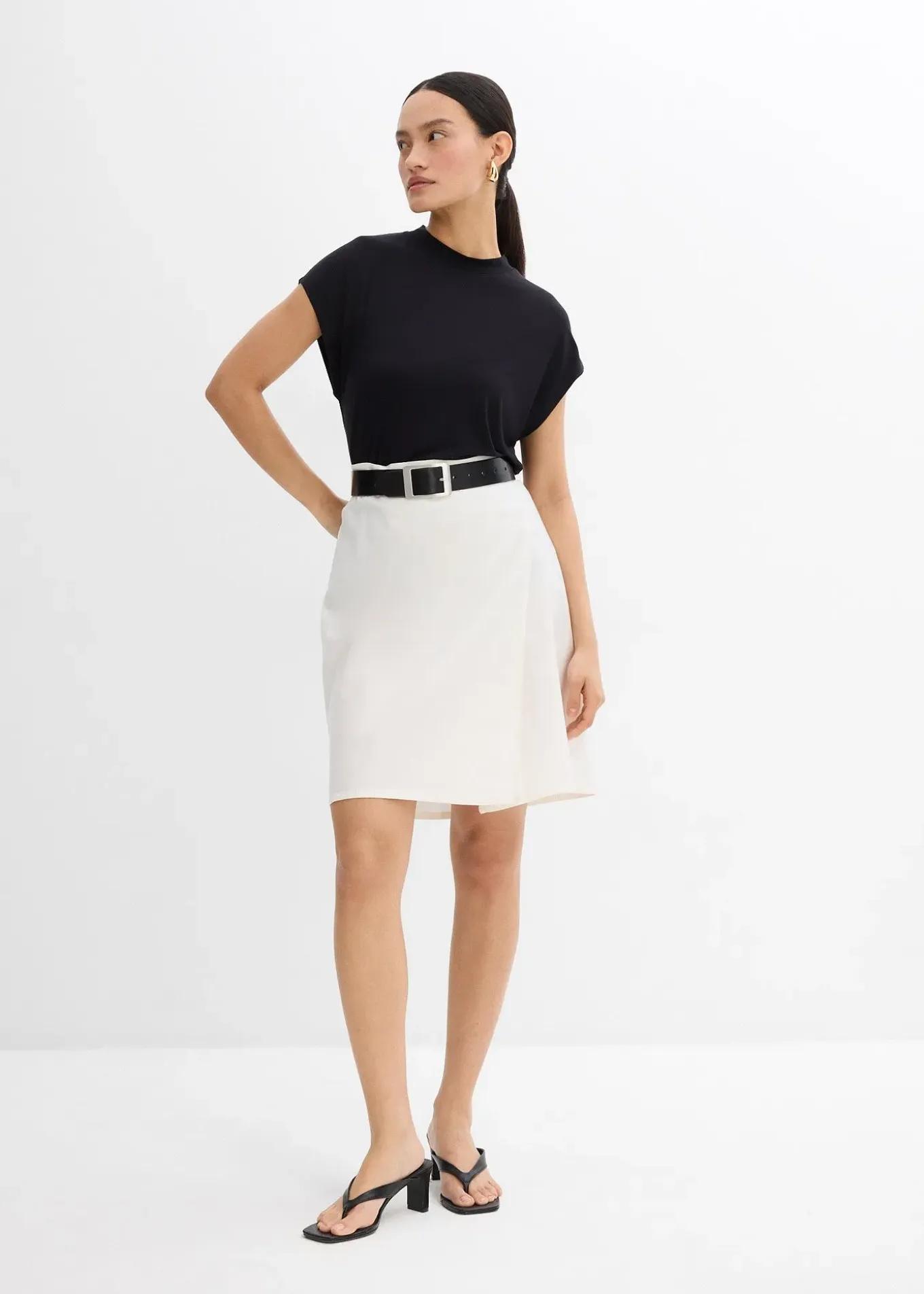 Mini-jupe aspect portefeuille, fermée par un bouton