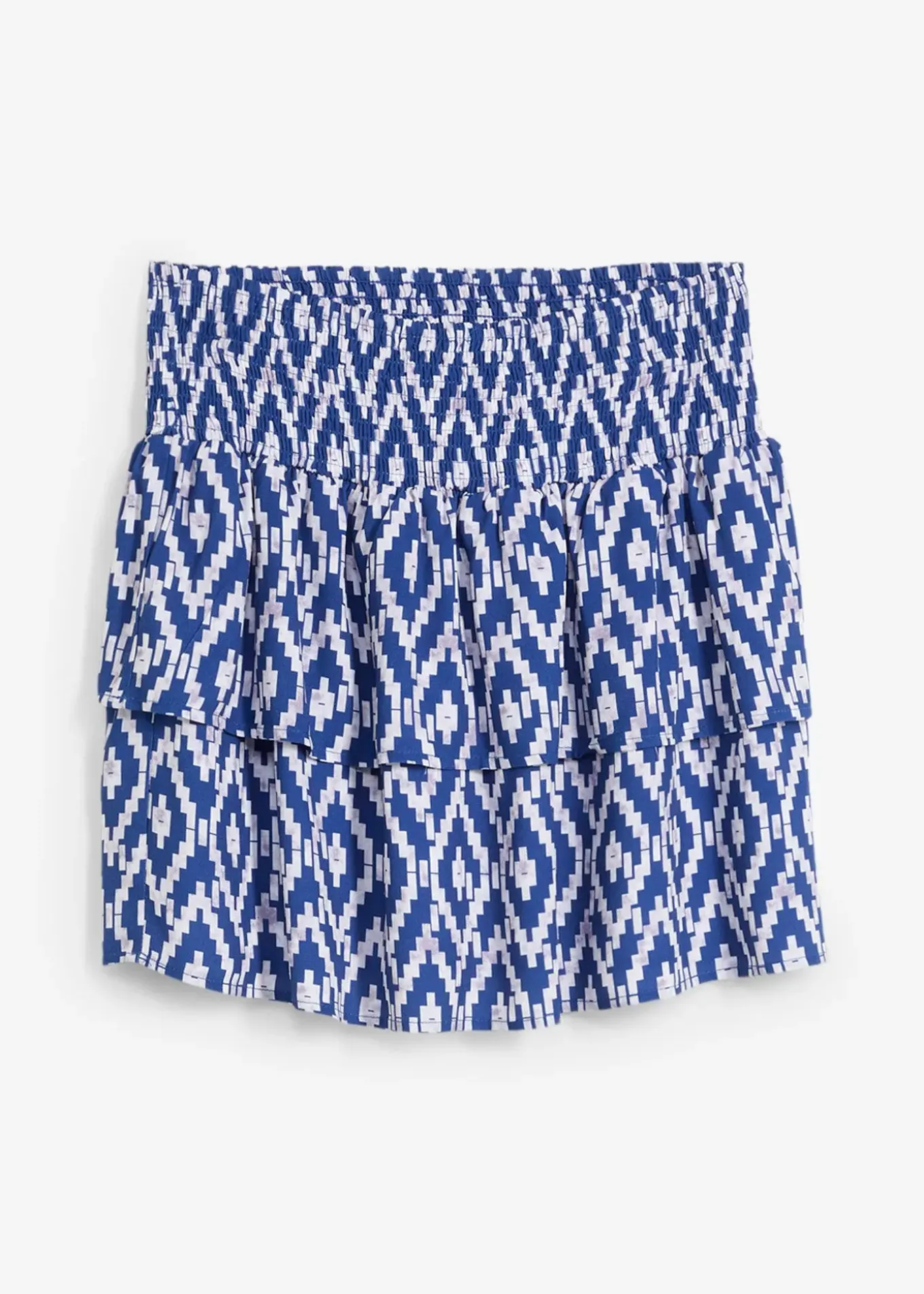 Mini-jupe estivale en viscose fluide avec volants et smocks
