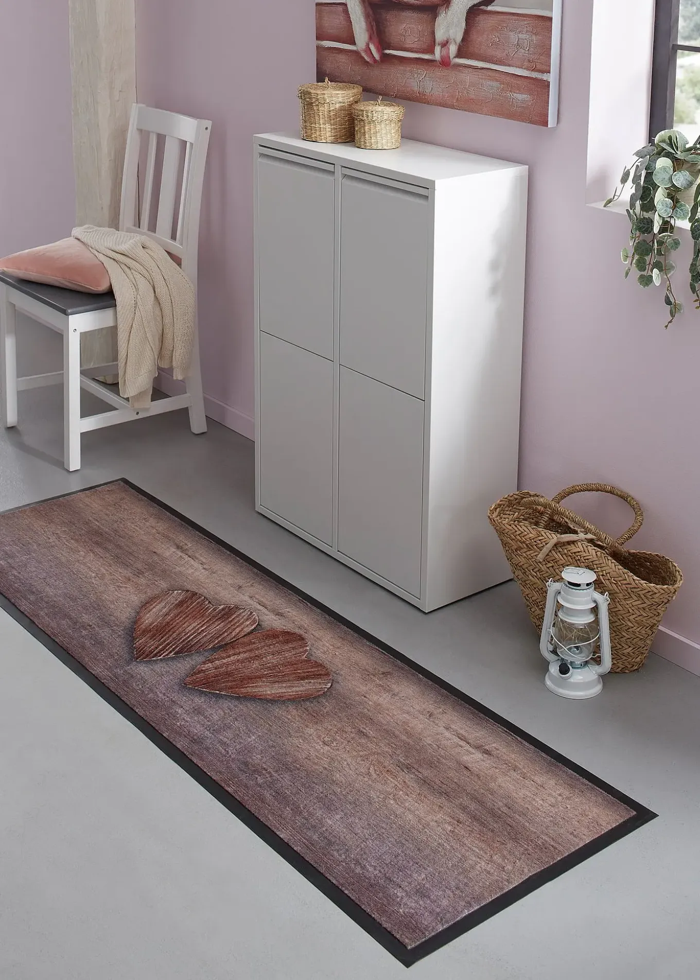 Déco et adorable : paillasson imprimé motif cœur en bois
