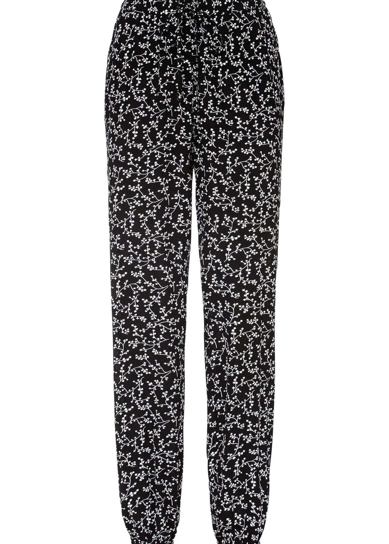 Pantalon moderne de BODYFLIRT. Pantalon avec empiècement taille élastique et élastique coulissé à la base avec lien à nouer et poches latérales. Long. entrejambe env. 81,5 cm.