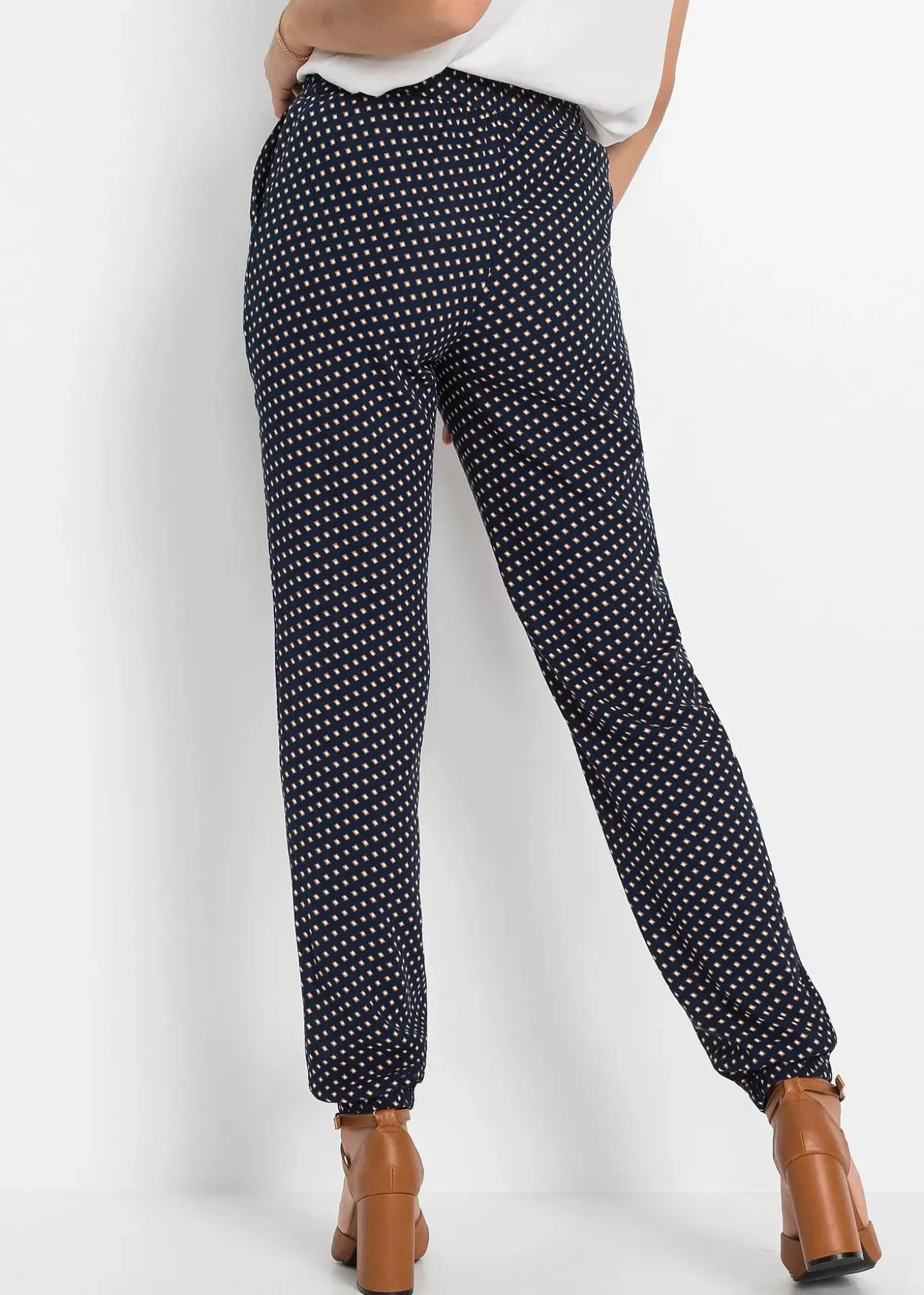 Pantalon moderne de BODYFLIRT. Pantalon avec empiècement taille élastique et élastique coulissé à la base avec lien à nouer et poches latérales. Long. entrejambe env. 81,5 cm.