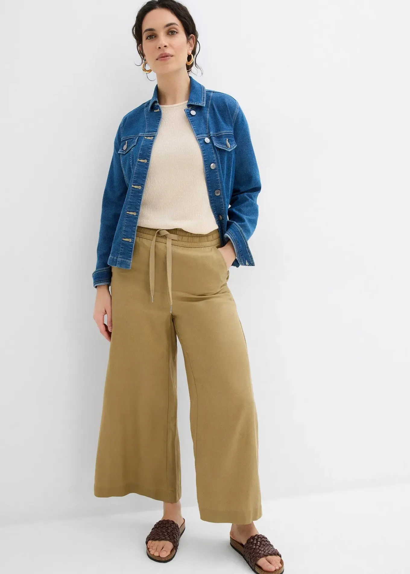 Pantalon large avec taille élastiquée, poches sur les côtés