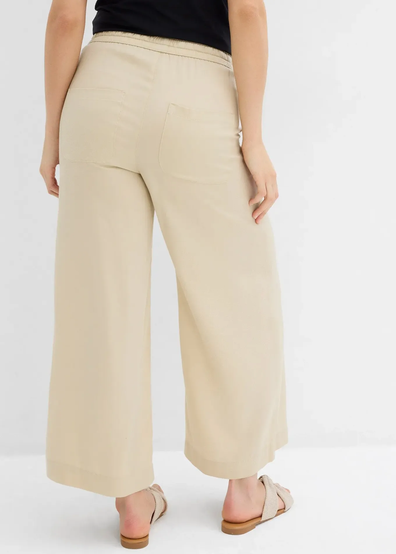 Pantalon large avec taille élastiquée, poches sur les côtés