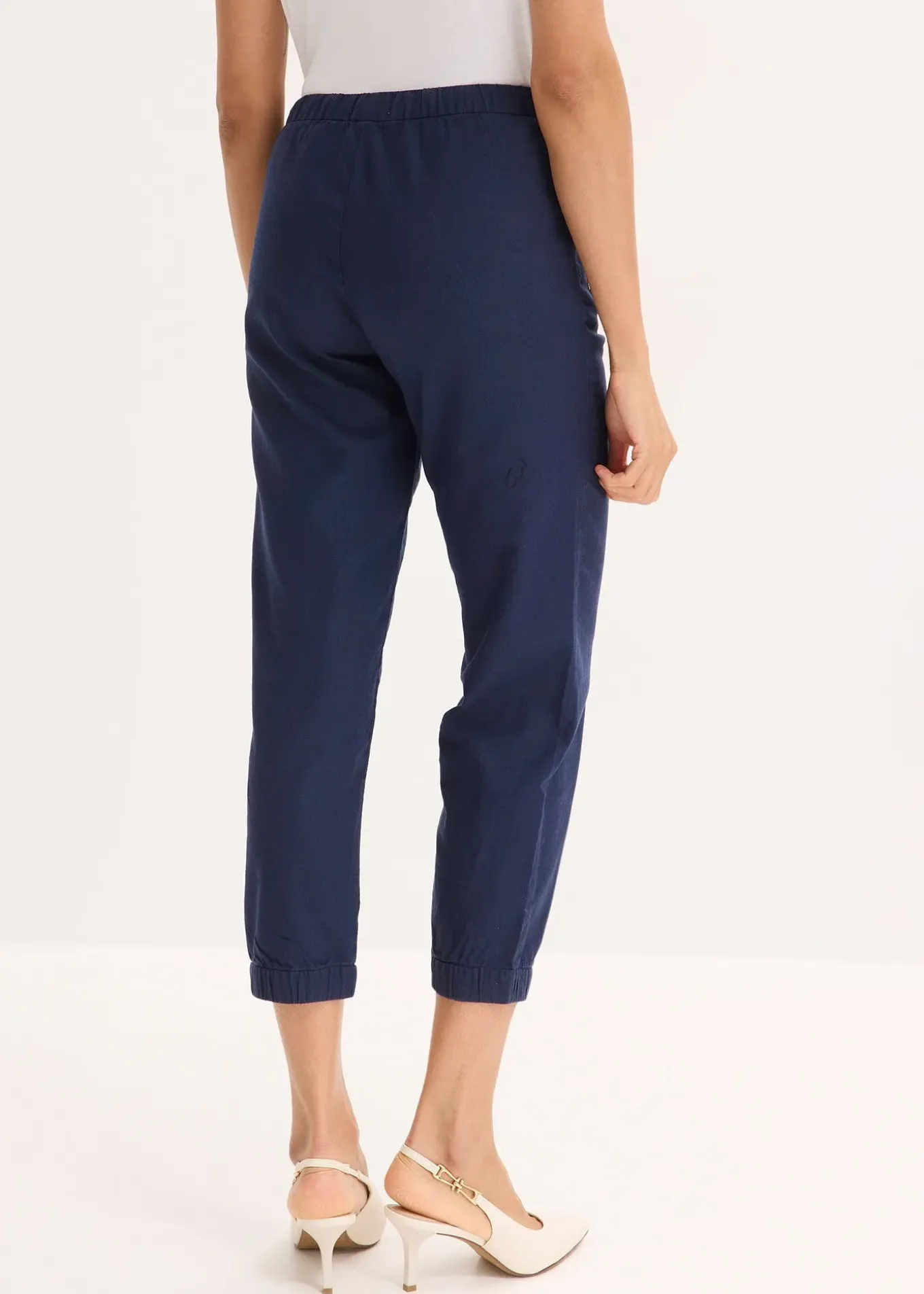 Pantalon en lin 7/8 à la coupe décontractée, bas de jambes élastiqués.