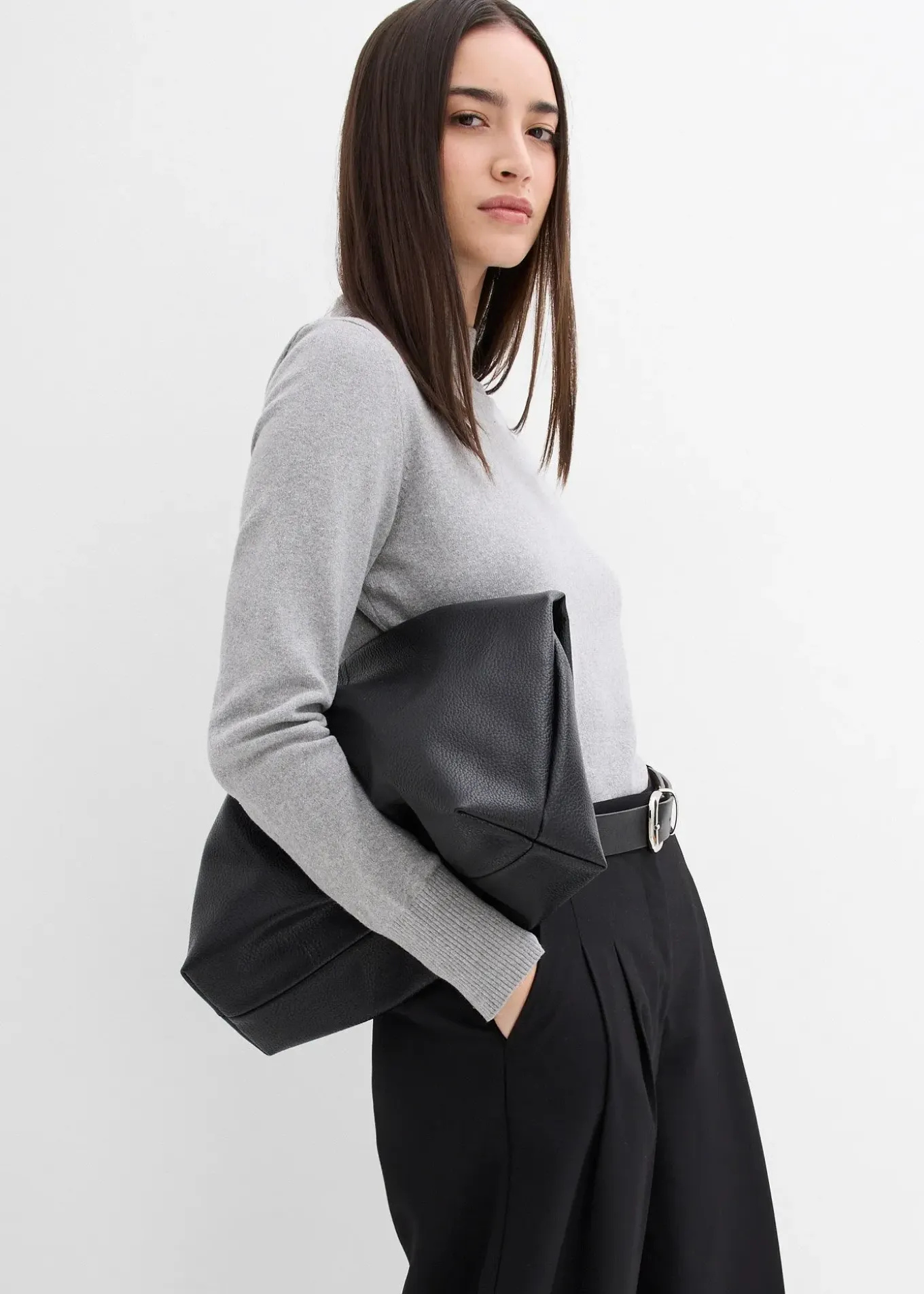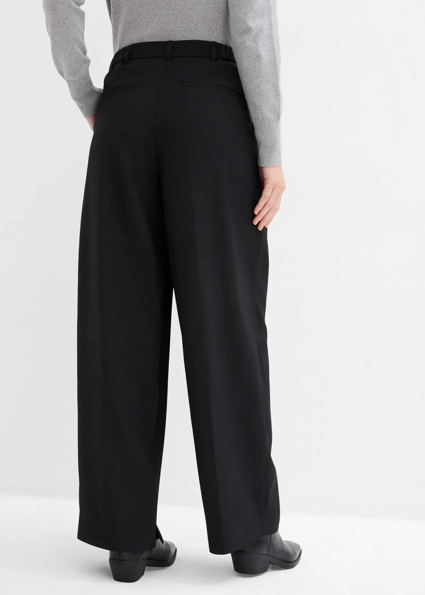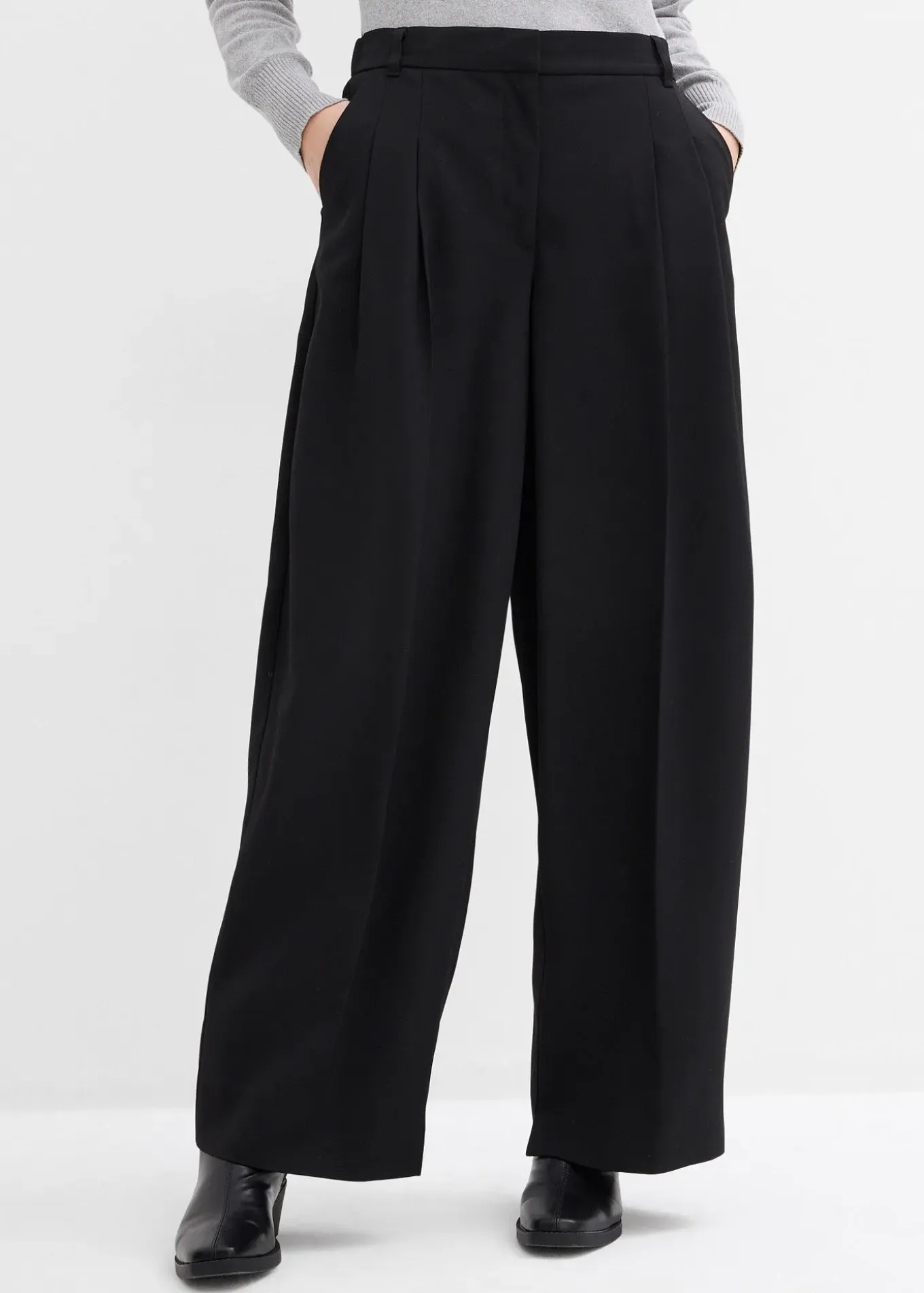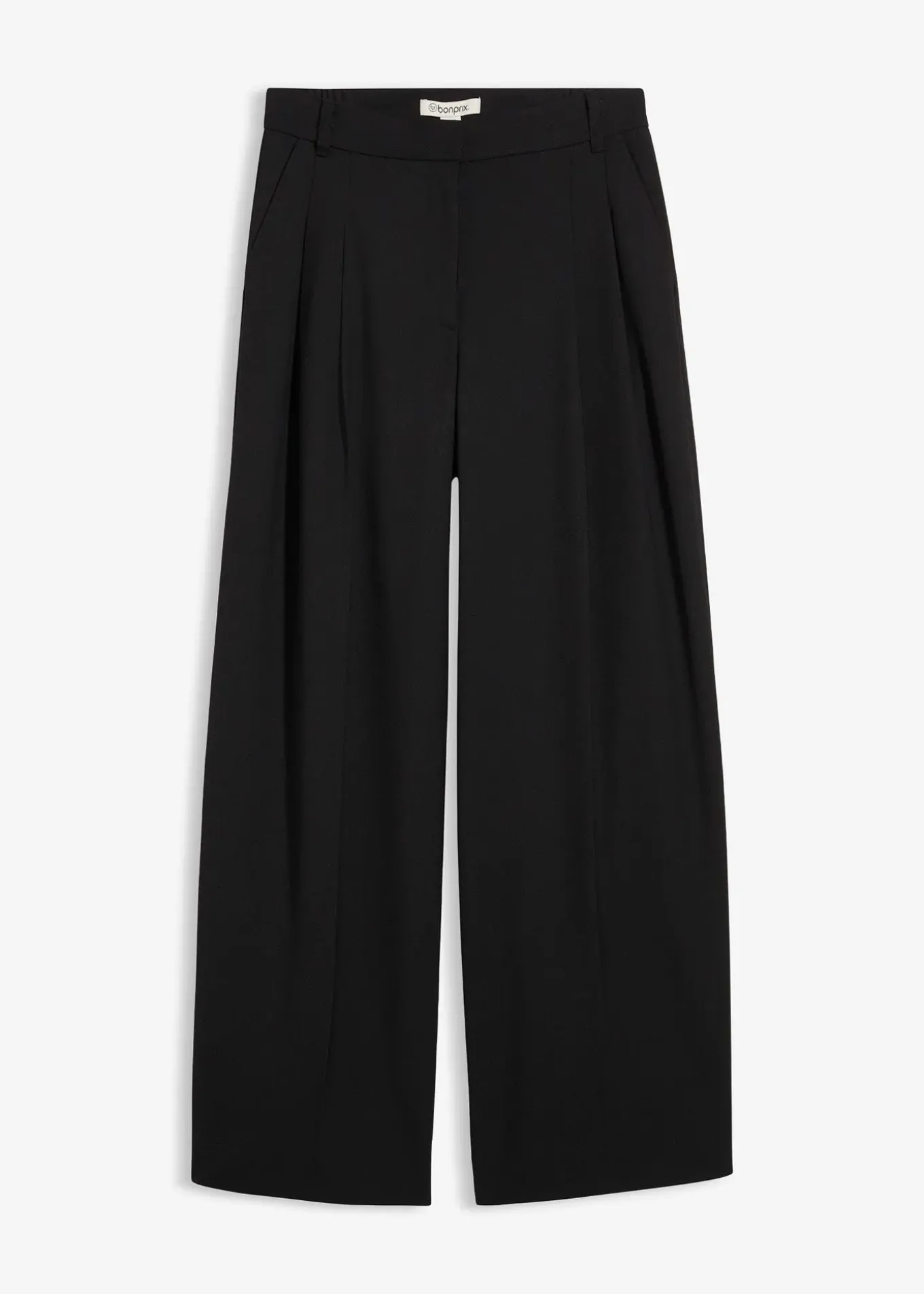 Pantalon à pinces, jambes resserrées vers le bas et taille haute, poches dans les coutures latérales