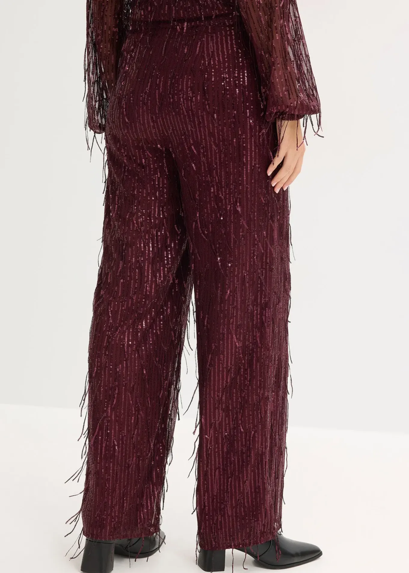 Pantalon tendance et doublé à sequins et franges