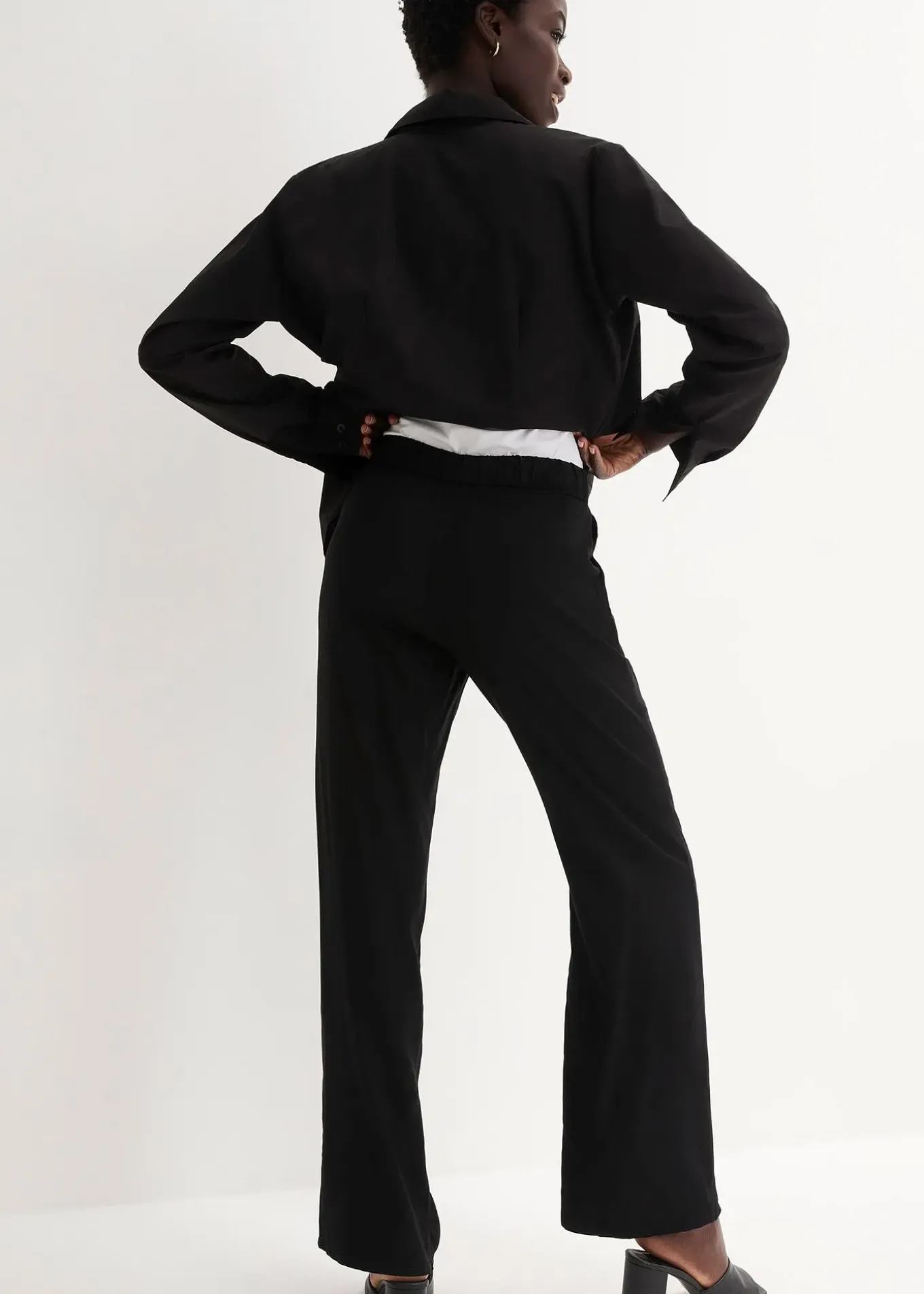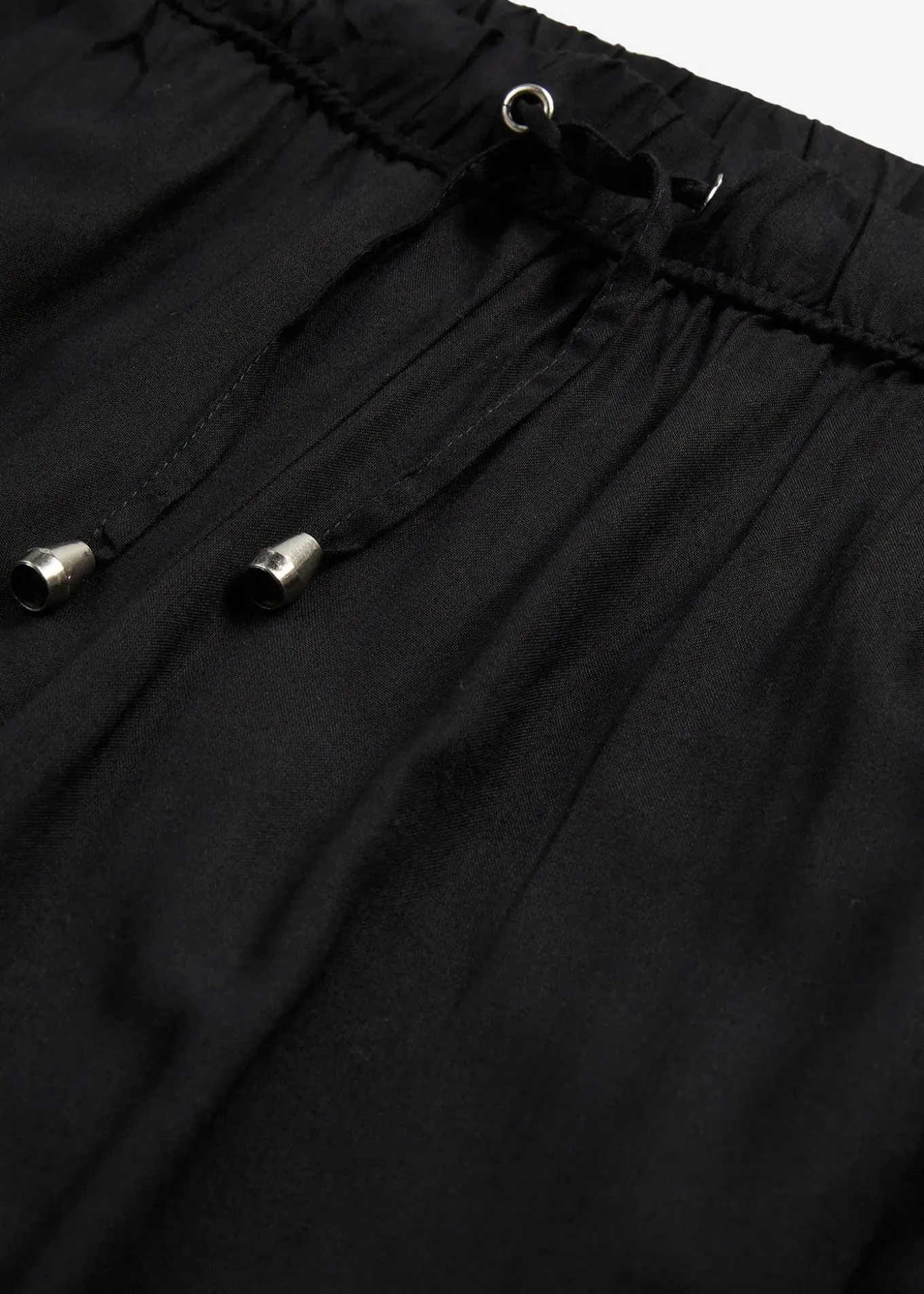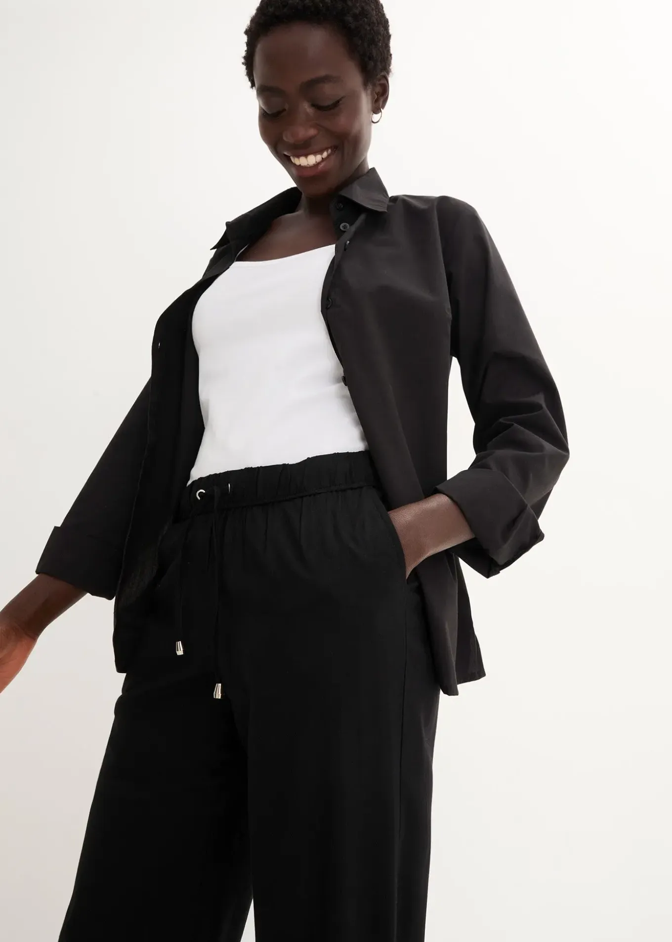 Tour de taille élastiqué, deux poches latérales, cordon à nouer, long. entrejambe env. 80,5 cm, lavage machine.