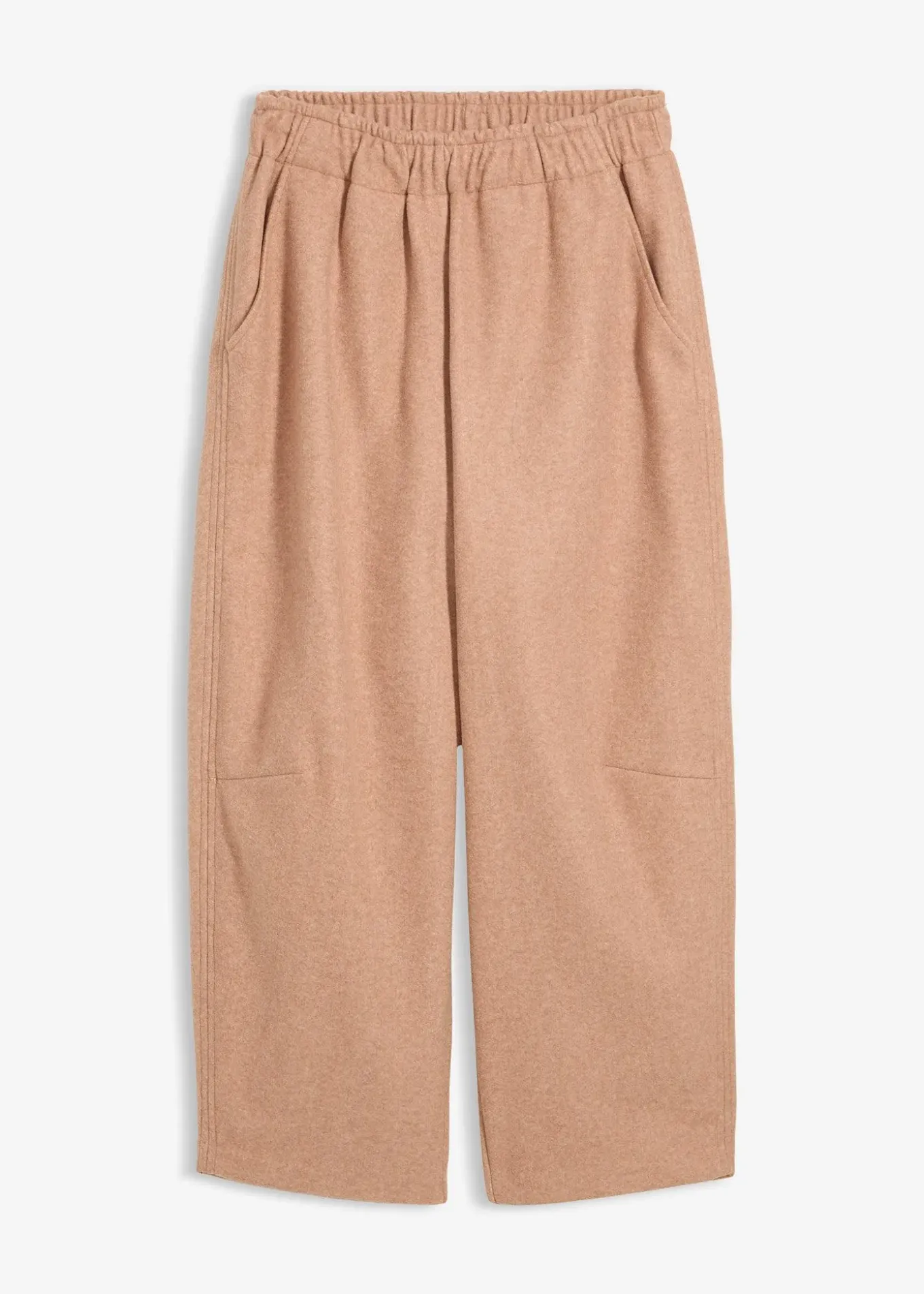 Pantalon barrel avec taille haute et élastiquée, raccourci