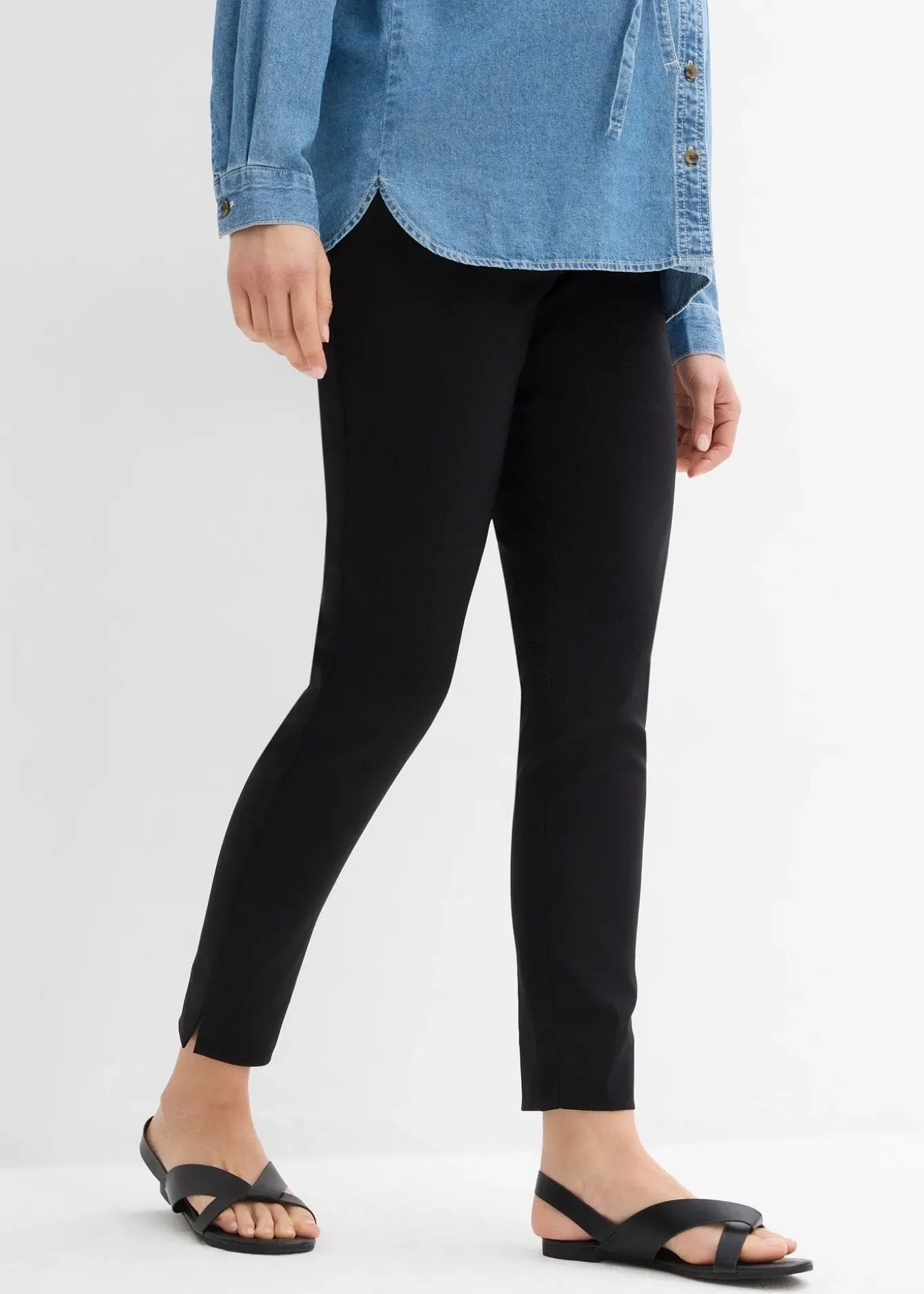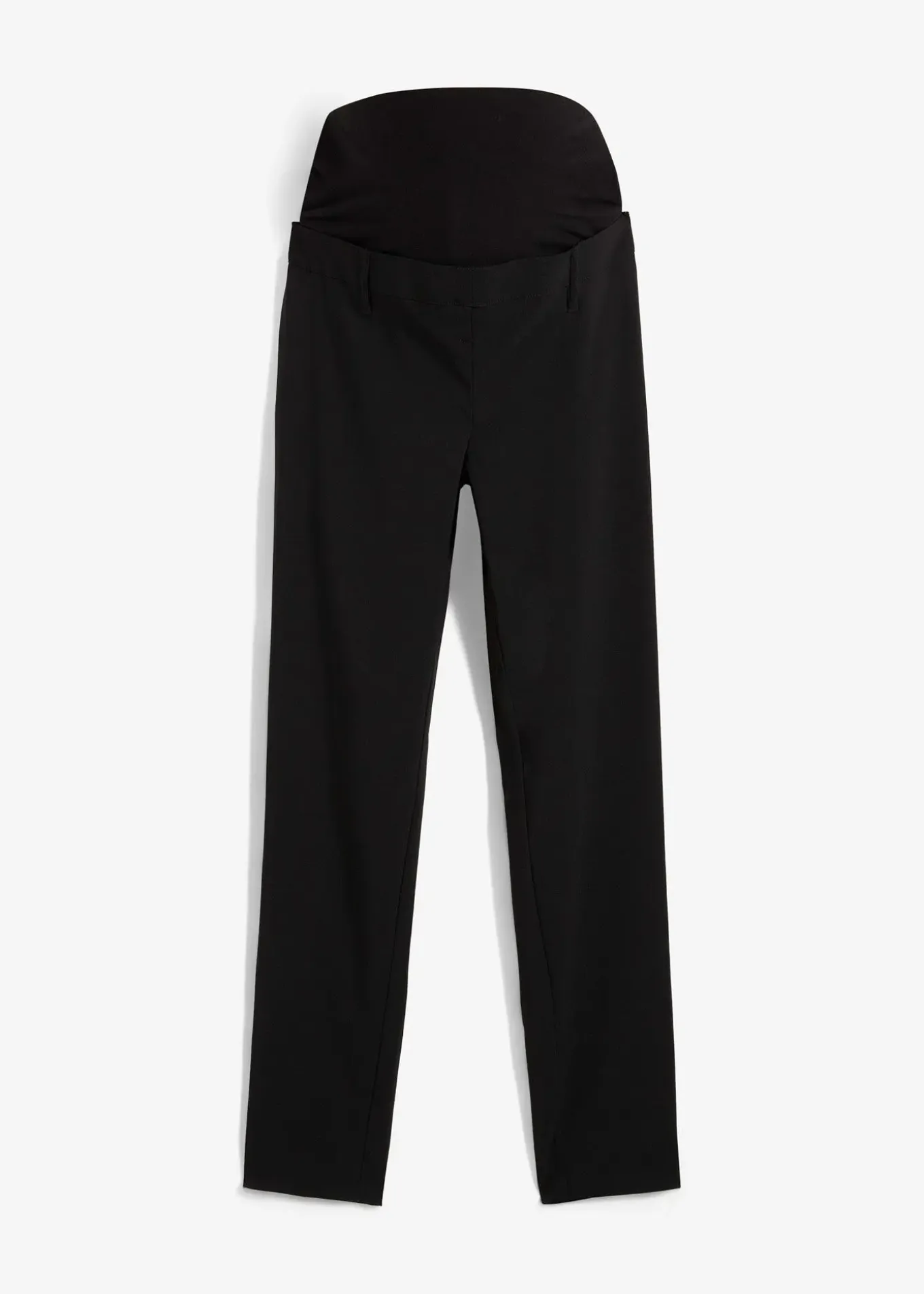 Pantalon de grossesse élégant en bengaline avec élasthanne pour plus de confort. Taille avec élastiques devant pour un ajustement personnalisé au niveau du ventre et un élastique au dos pour plus de confort. Poches cavalières devant et poches au dos pour un look élégant. Bas de jambes légèrement fendus. Bandeau en jersey doux pour soutenir votre ventre qui s’arrondit au fil des mois.