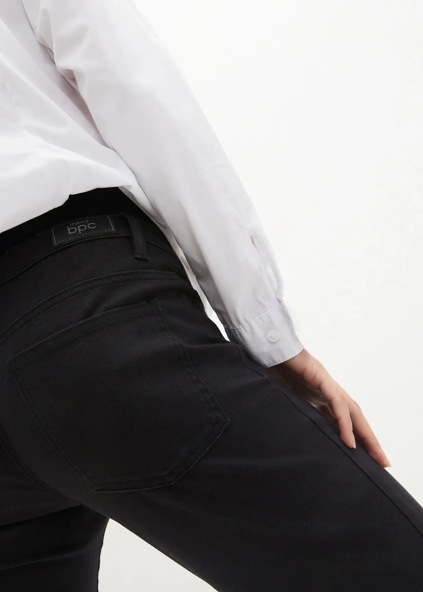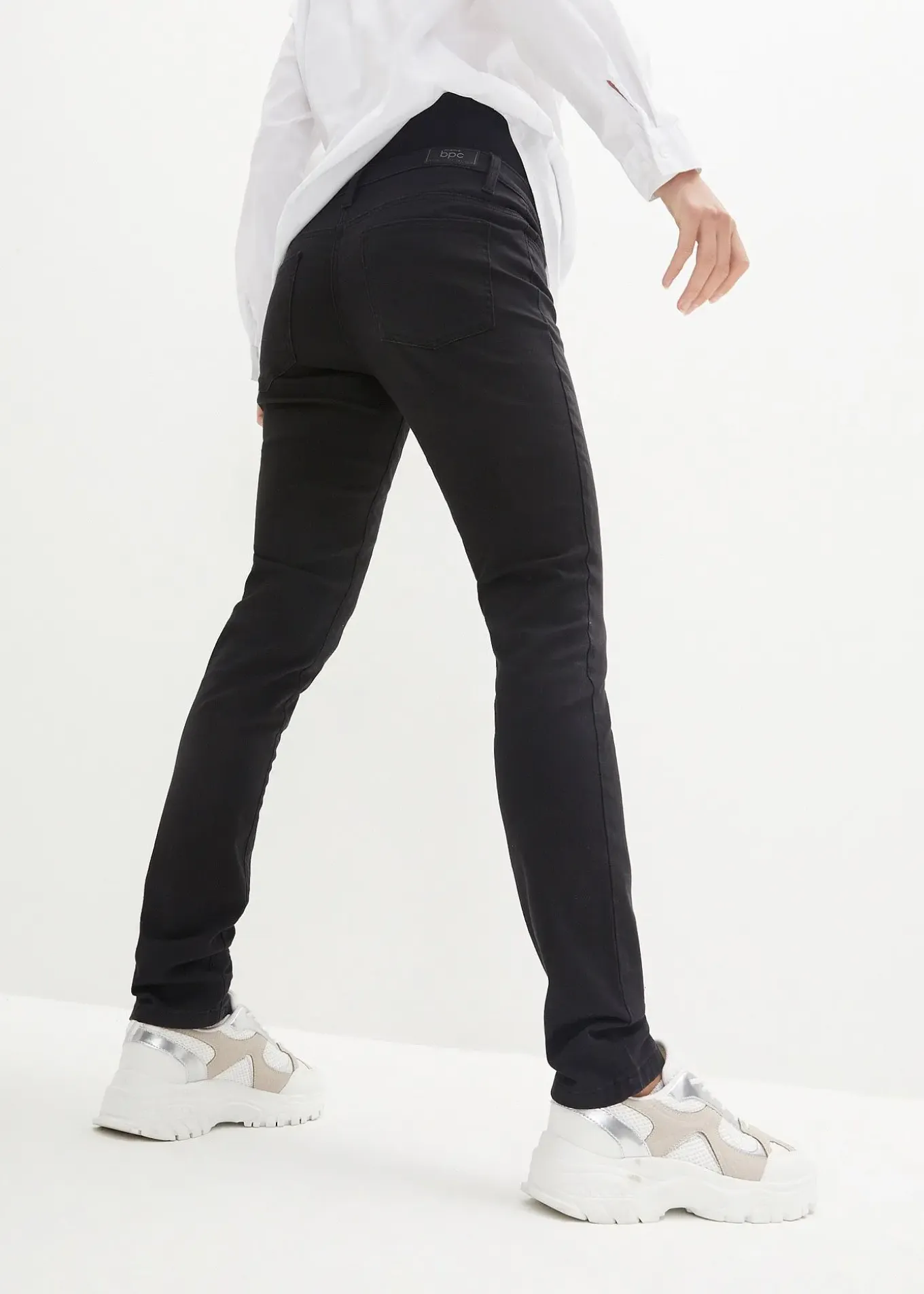 Jean 5 poches en denim coton extensible pour plus de confort. Coupe confortable avec jambes légèrement étroites. Large bandeau monté en jersey coton pour un ajustement optimal sur le ventre. Taille avec élastique réglable pour ajuster l’ampleur au fil de la grossesse.
