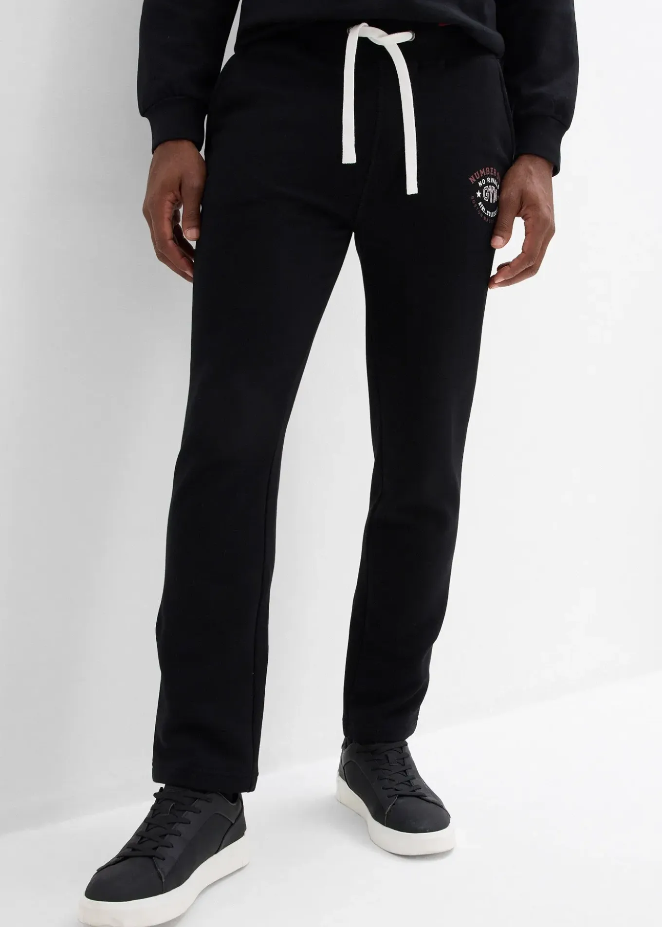 Pantalon de jogging homme de bpc à taille élastiquée avec cordon cousu pour un confort optimal. Petit imprimé devant. À porter pour le sport et à la maison.